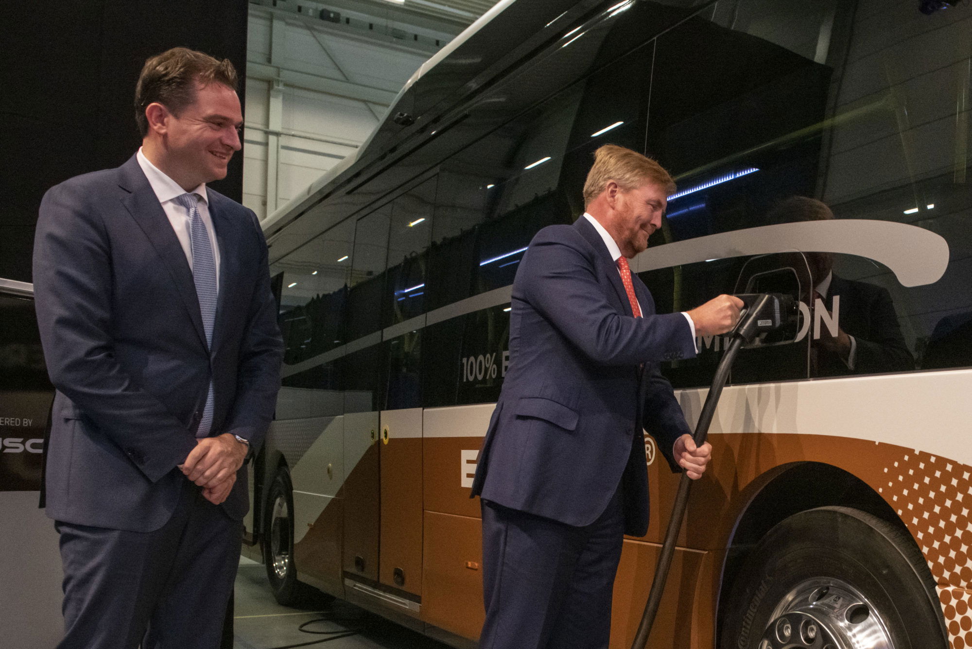 Királyi avatás: Vilmos Sándor holland király az Ebusco 3.0 prototípusának jelképes töltőre helyezésével nyitotta meg a deurne-i gyár új csarnokát