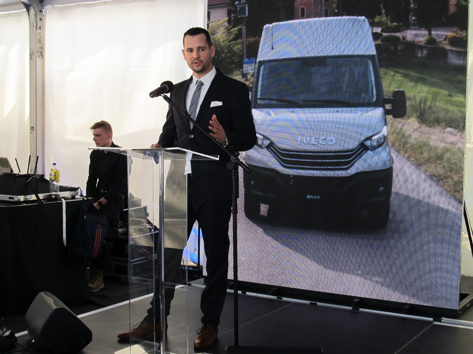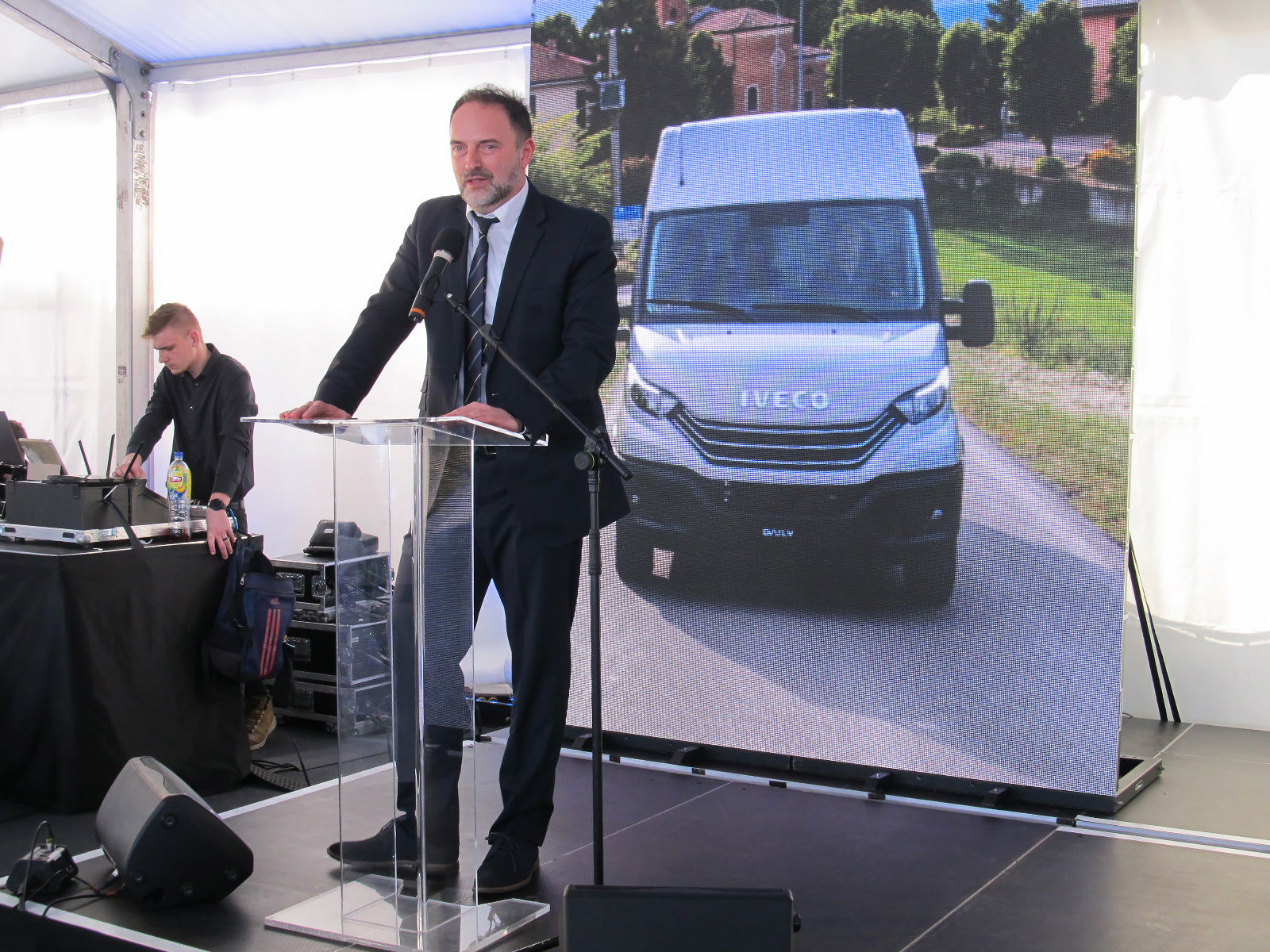 Az ECO-tech visiON Kft. szigetszentmiklósi telephelyén megtartott sajtórendezvényen Molnár Tamás, a társaság ügyvezetője köszöntötte az egybegyűlteket, aki családilag is már hosszú évtizedek óta kötődik az Iveco márkához. Beszédében elmondta, az Iveco magyarországi jelenlétének megújítási folyamatát egy éve kezdték el felépítményezéssel és haszonjárművek tartós bérbe adásával foglalkozó alapító társaival. Az ECO-tech visiON Kft. egyetlen profilja az Iveco termékeinek hazai képviselete, így minden energiájukkal erre a feladatra tudnak koncentrálni. Elmondása szerint a jelenlegi globális nehézségek – a koronavírus-világjárvány, a chiphiány illetve az ukrajnai háború – ellenére is elkötelezettek a fenntartható fejlődés mellett, gazdasági és környezetvédelmi szempontból egyaránt. Az új képviselet saját referenciaszervizzel rendelkezik Szigetszentmiklóson, amelynek alapján egy országszerte elérhető hálózat kiépítése a cél. Újságírói kérdésre válaszolva Molnár úr elmondta, hogy a háború egyelőre nem okoz ellátási gondokat az Ivecónál, ellentétben az európai járműipar számos más szereplőjével.