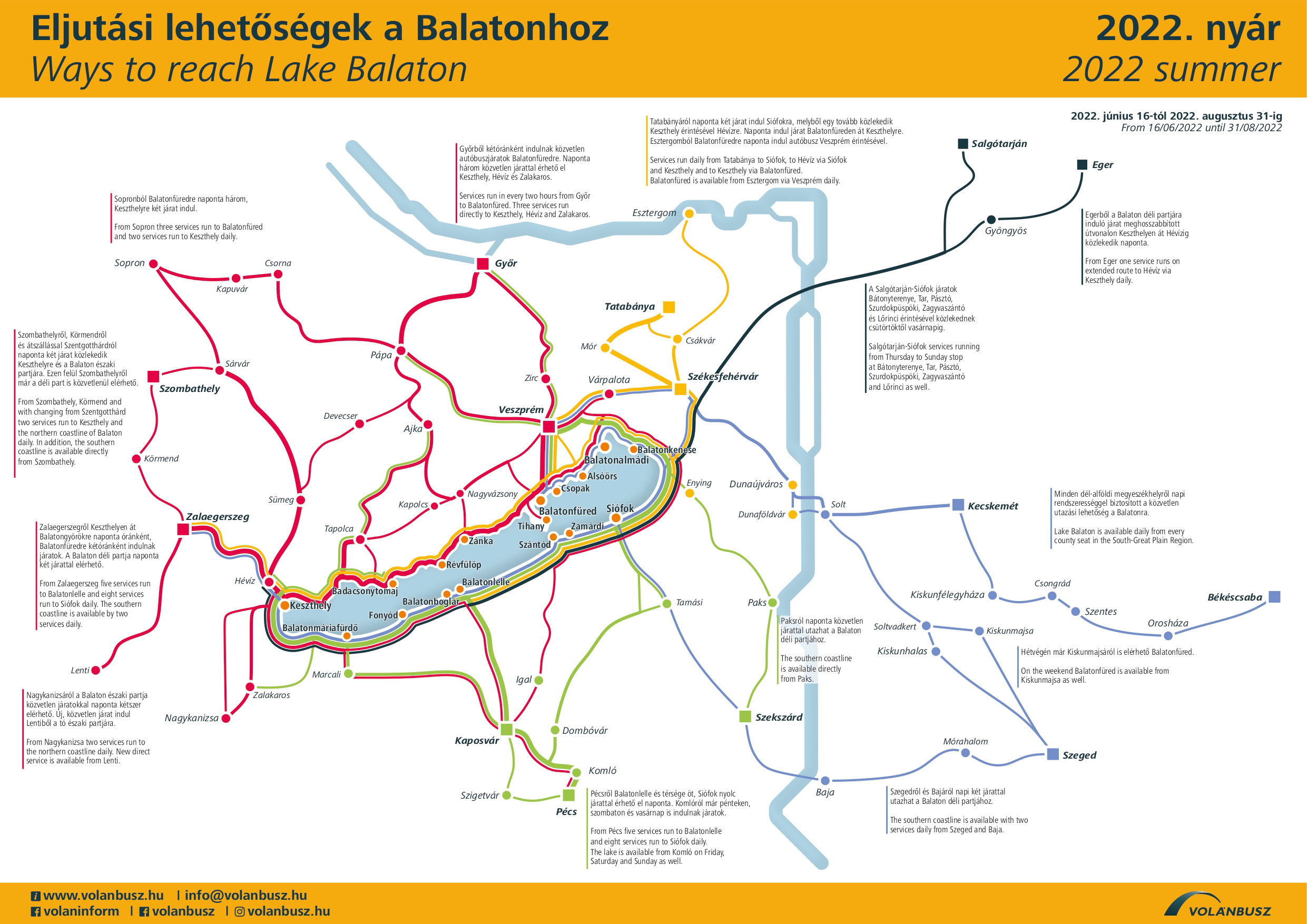 A Volánbusz Zrt. hálózatán június 16-án indul a nyári szezon, a nyári tanszünet kezdetétől az ország számos pontjáról még kedvezőbbé válik a Balaton elérése a társaság autóbuszaival. Több új járat indul, egyes járatok gyakrabban és több települést érintve közlekednek, illetve számos városban tovább javulnak az autóbuszok és a vonatok közötti átszállási lehetőségek.
