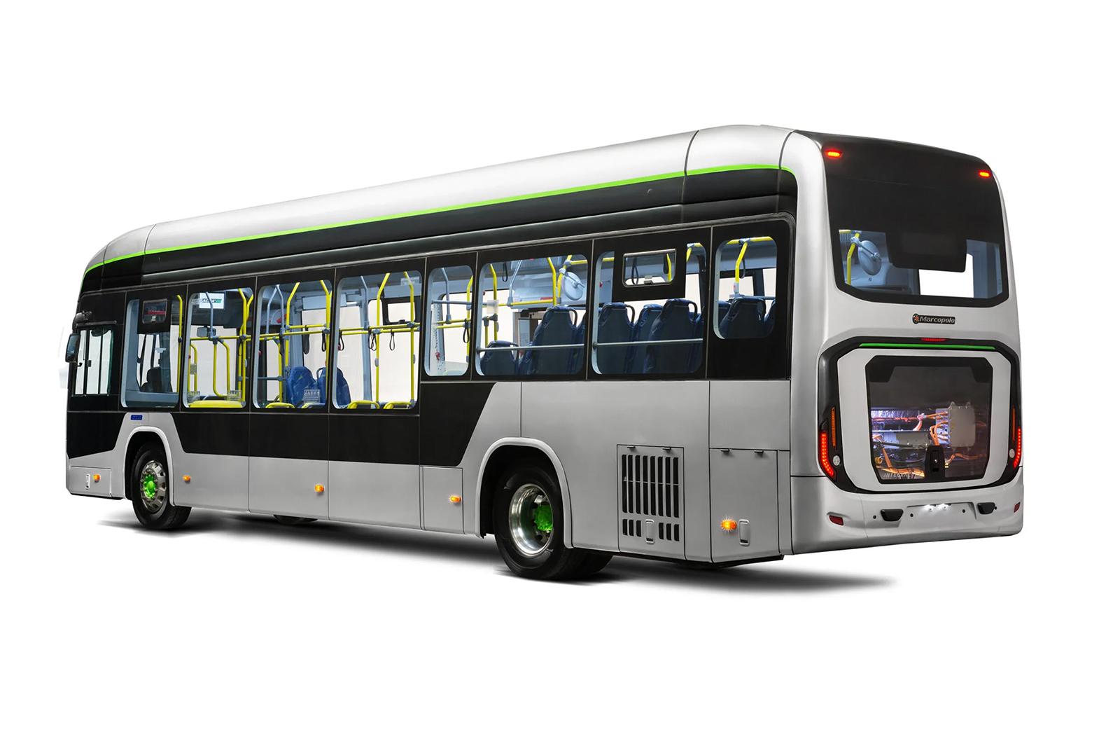 A belföldi főegységek előnyben részesítésének jegyében a demóbuszban használt 395 kW csúcsteljesítményű és 2800 Nm legnagyobb nyomatékú háromfázisú központi villanymotor a brazil WEG cégtől érkezik. A jármű összesen 89 utas szállítására alkalmas, az egy feltöltéssel megtehető hatótávolsága eléri a 250 kilométert.