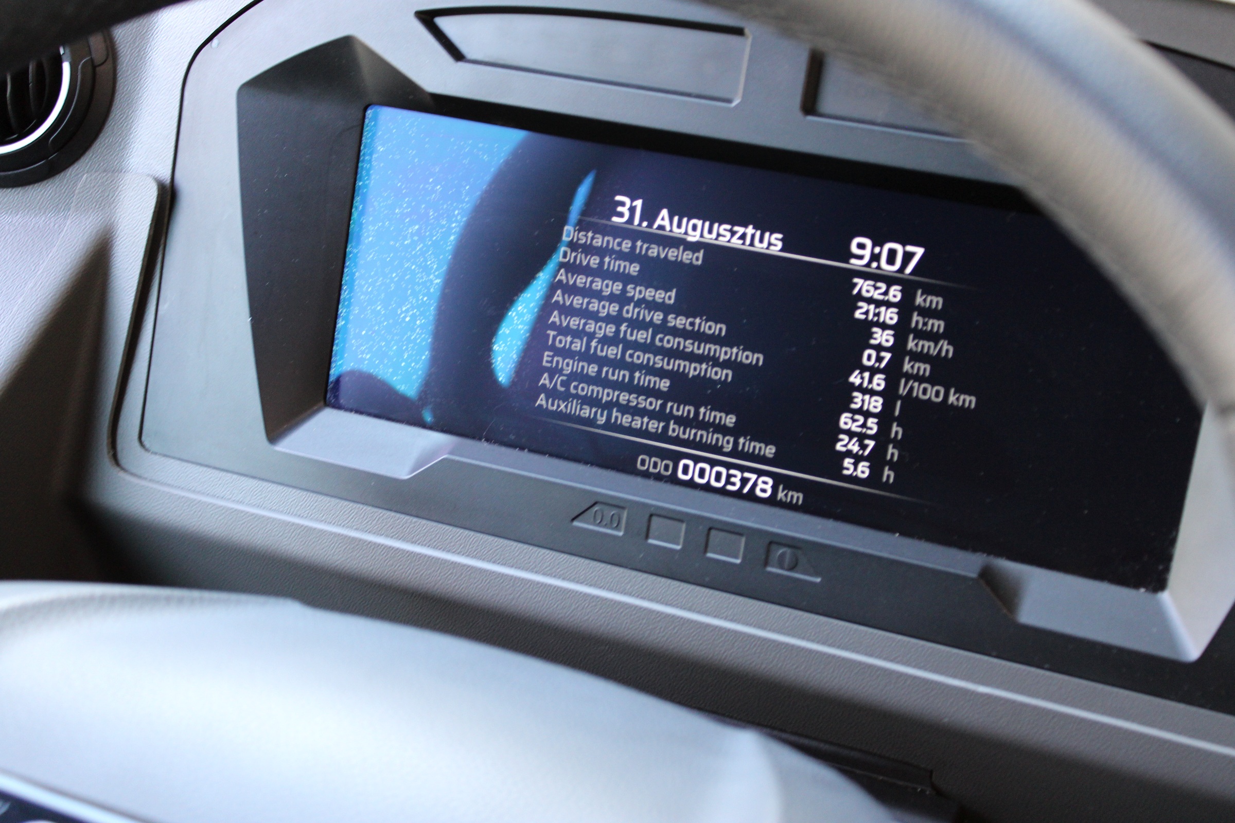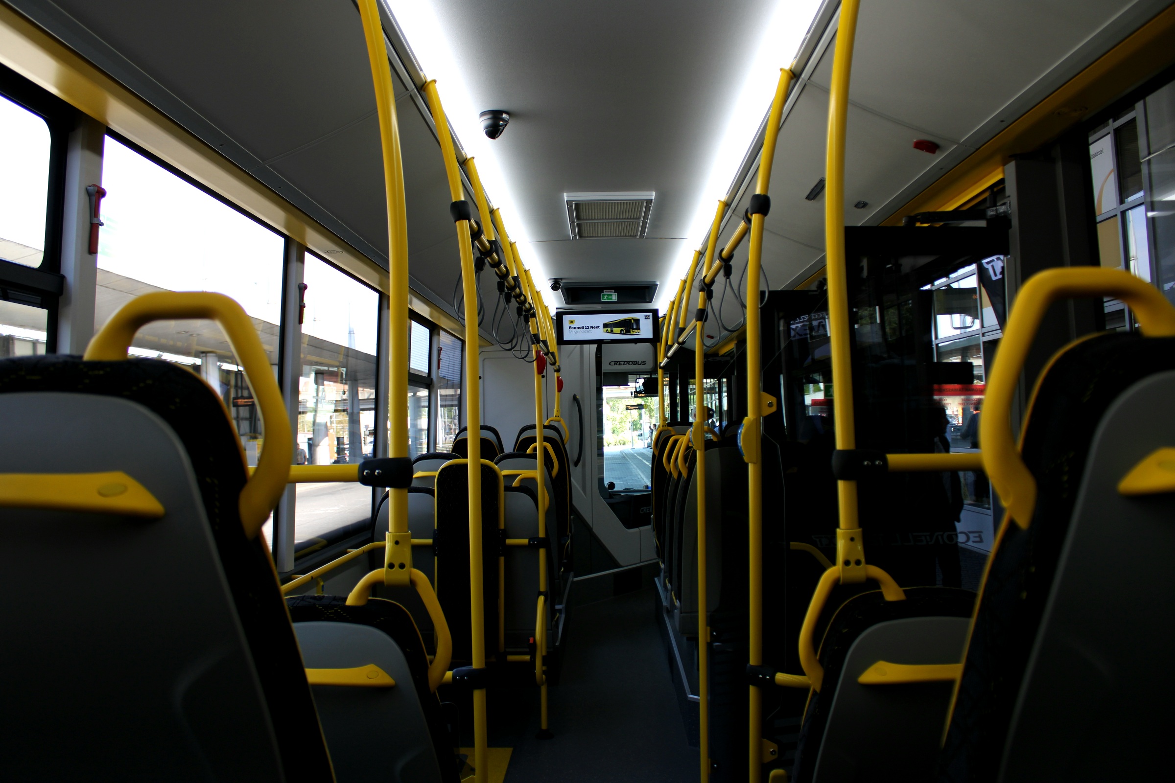 Az utastérbe tehát két darab teljes szélességű, kétszárnyú bolygóajtón át vezet az út, a második ajtónál a jól megszokott kézi működtetésű kerekesszékes rámpával. Az alacsony belépésű konstrukciókra jellemző lépcső valamivel a második ajtó vonala mögött kezdődik és két lépcsőfokból áll, a leghátsó üléssort pedig egy további fellépőn át lehet megközelíteni. A prototípus 43 ülőhellyel rendelkezik, M3/II járműosztály szerinti konfigurációban 40 álló utasnak is jut hely a fedélzeten, továbbá egy kerekesszékes személy utazása is biztosított. A 2+2 sorban beépített, török Brusa Create 80 típusú magasított háttámlás, vastagon párnázott ülőalkalmatosságokat páronként egy-egy dupla USB-töltőponttal is ellátták, sajnos azonban mindössze hat ülés közelíthető meg dobogóra lépés nélkül, ami ma már egészen alacsonynak számító, kevesebb, mint 14%-os arányt jelent. A mennyezeti burkolat és a légcsatornák letisztult hatást keltenek, a fent sínes rendszerben rögzített függőleges kapaszkodók viszont alul továbbra is nyílegyenesen a padlóba vannak levezetve, miközben az innovatívabb nyugati gyártók a jobb takaríthatóság érdekében már rendszerint az oldalfalakhoz kötik be ezeket. Említést érdemel a megújult vezetőkörnyezet, az egyszerű tagolású, de modern műszerfallal és a formatervezett foglalatban elhelyezett digitális műszeregységgel. Utóbbi különösen tetszetős, akárcsak a stílusos formájú multikormány. A rögzítőfék a csuklós verzióhoz hasonlóan a szólóban is elektronikus működtetésű. A bemutatóbusz felszereltségében a fedélzeti WiFi és a biztonsági kamerarendszer is megtalálható.