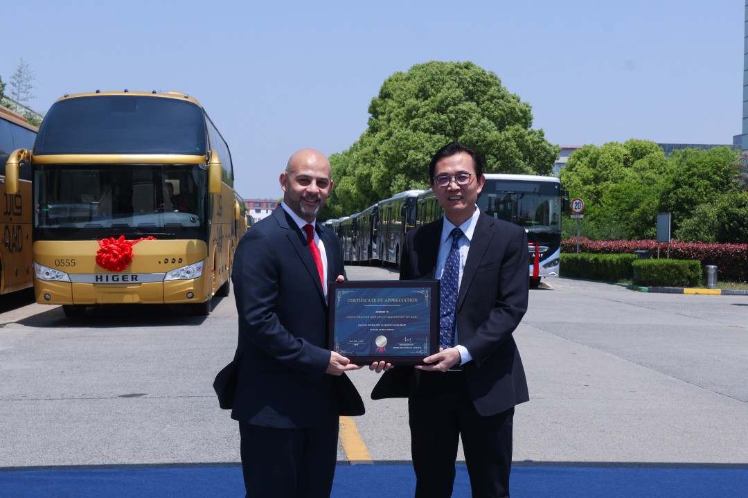 A szaúdi Qaid busztársaság emblémáját viselő aranyszínű turistabuszok mellett a Higer városi-elővárosi típusainak legújabb generációját képviselő szóló autóbuszok is láthatók a felvételeken. A járművek specifikációját illetően sem bizonyult bőbeszédűnek a kínai gyártó, leszámítva, hogy elmondásuk szerint a buszokat felkészítették a szaúd-arábiái száraz, forró klimatikus viszonyokra, ahol a csúcshőmérséklet nyáron akár az 53 °C-ot is elérheti. A járművek a Higer és a szaúdi forgalmazó vezetőinek jelenlétében megtartott átadóceremóniát követően hajóra pakolva indultak útnak rendeltetési helyük felé.