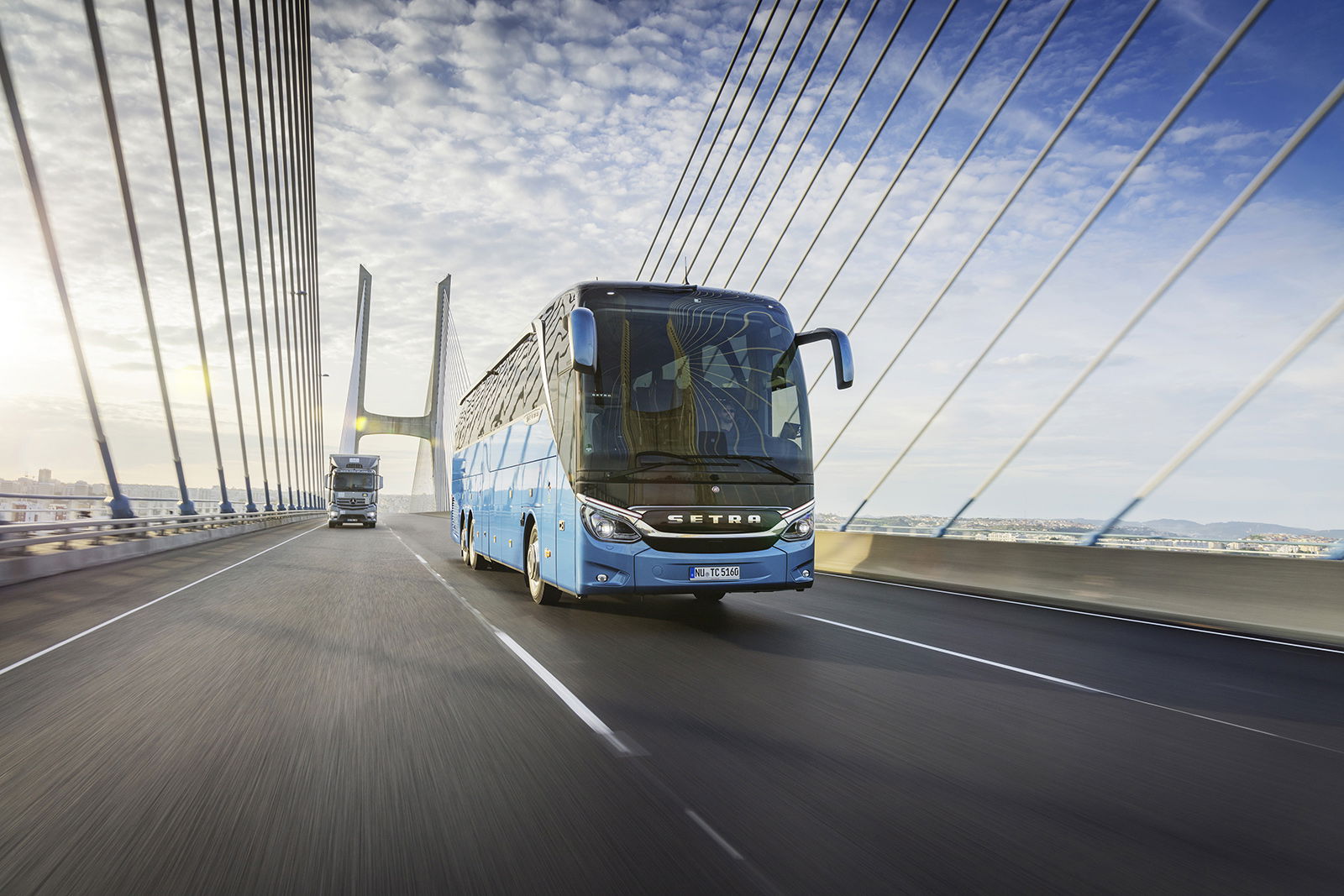 A cégcsoport európai prémiummárkájaként tevékenykedő Setra természetesen az idei legnagyobb újdonságát, az immár kizárólag alacsony belépésű karosszériával készülő MultiClass sorozat vadonatúj nemzedékét állítja majd reflektorfénybe Brüsszelben. A gyártó által városi és helyközi feladatokra egyaránt ajánlott típuscsaládot ezúttal a 14,5 méter hosszú, háromtengelyes S 518 LE csúcsmodell képviseli majd, amelynek egyik prototípusát bő három hete egy bulgáriai autópályán is megörökítették. A terjedelmes jármű a szabadtéri szekcióban kap helyet, de a Daimler Buses előzetesen kiadott sajtóanyaga alapján a tavaly felfrissített ComfortClass és TopClass széria turistabuszai is megtekinthetők lesznek a helyszínen a kínálat zászlóshajójával, az emeletes S 531 DT utazóbusszal együtt – a hírek szerint ezek mindegyike a neu-ulmi gyártó aktuális bemutatóbuszainak látványos mézarany fényezésében vonul majd fel.