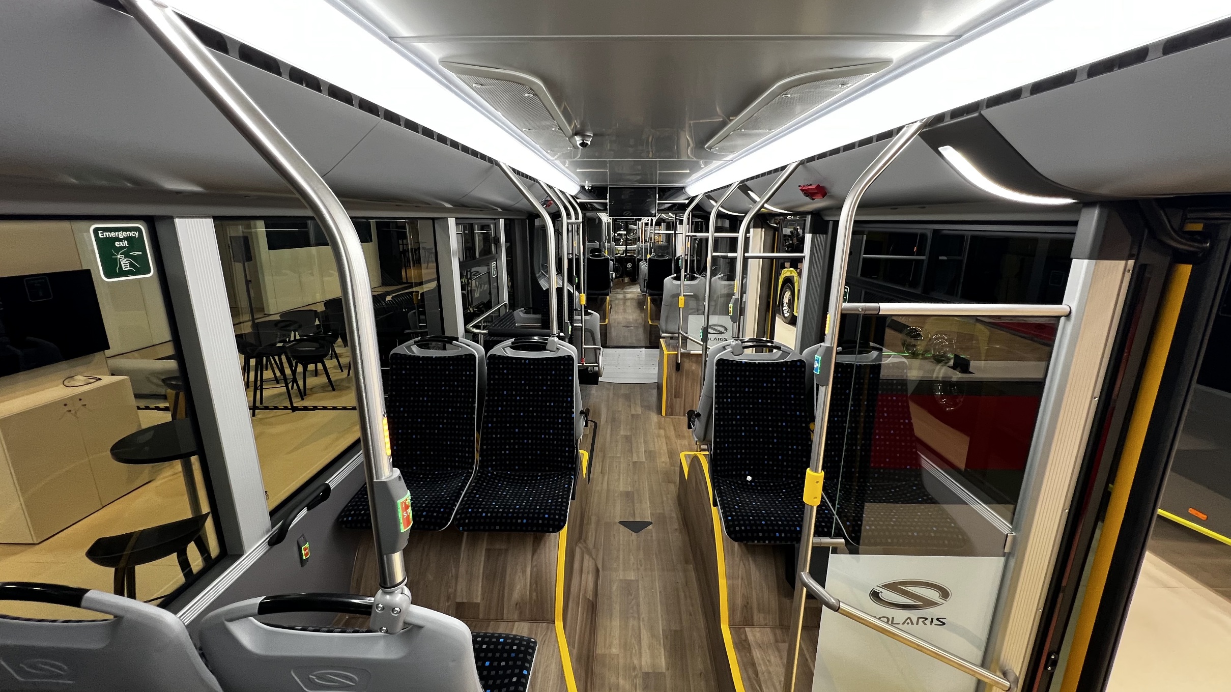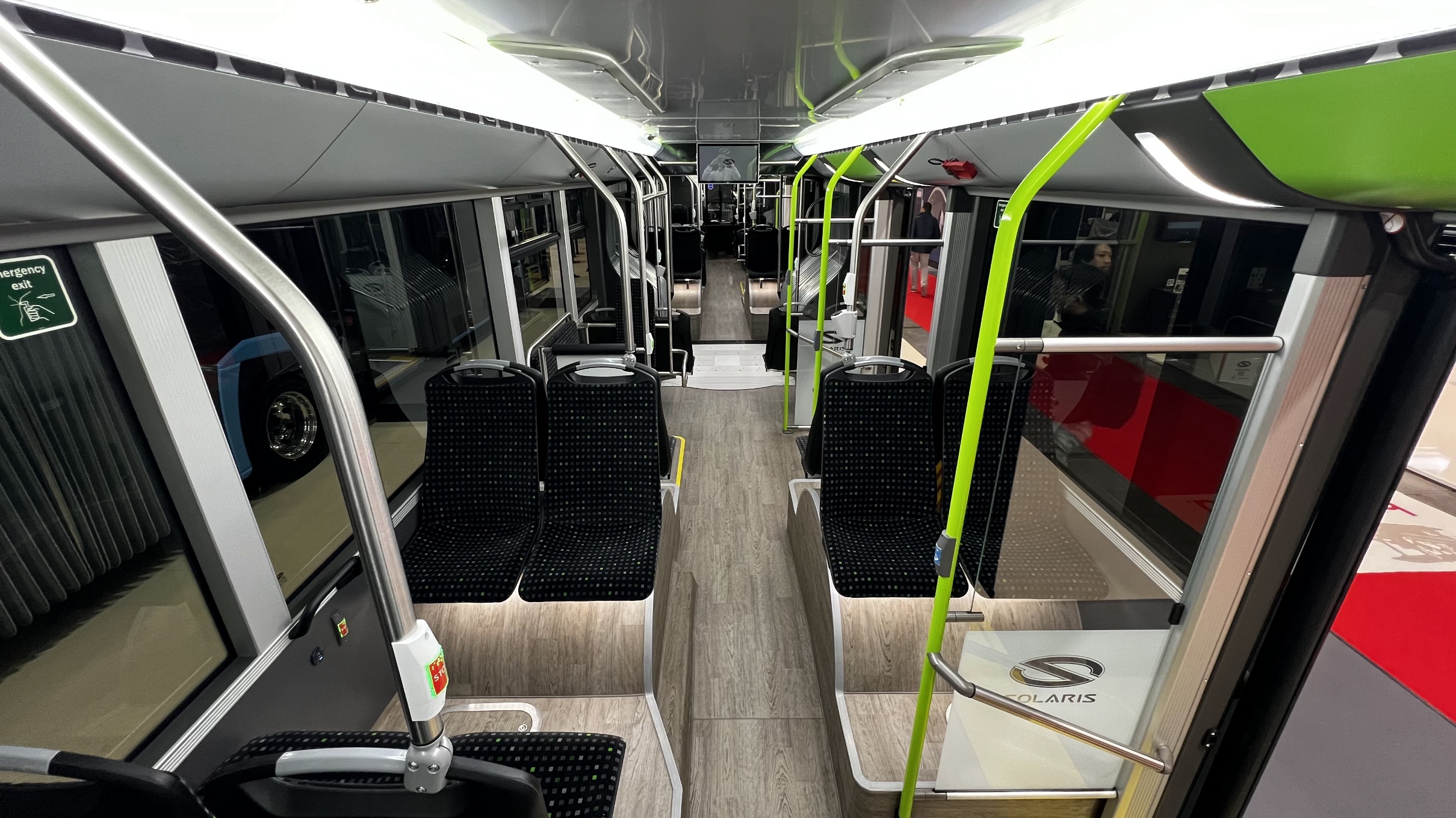A Solaris standján kiállított, továbbfejlesztett Urbino 18 Electric a gyártó által közölt adatok alapján figyelemreméltó akkukapacitással és ennek köszönhetően bámulatos hatótávolsággal rendelkezik. A gyártó az autóbuszból száműzte a motortornyos kialakítást, s az itt, valamint a busz farában korábban helyet kapott akkumodulokat felköltöztette a tetőre. A járműbe 8 darab nagy energiasűrűségű, a kínai CATL akkugyártótól érkező lítium-vasfoszfát, CtP (cell-to-pack) technológiáját használó egység került, ezek együttesen több mint 800 kWh kapacitást képviselnek, ami a piacon egyedülálló energiatárolóképességet jelent ebben a kategóriában. Jelenleg még a Daimler és az MAN sem rendelkezik 700 kWh fölé skálázható akkukapacitással elektromos csuklósai tekintetében. Az akkomodulokból 6 darab került az első kocsitestre, B tengely fölé, 2 pedig a csuklószerkezet mögé. A Solaris állítása szerint a jármű ezzel az akkumulátorkonfigurációval, az e-SORT 2 tesztek alapján akár 600 kilométeres hatótávolságot is képes megtenni egyetlen feltöltéssel, ami akár már két üzemi napra is elegendő lehet.