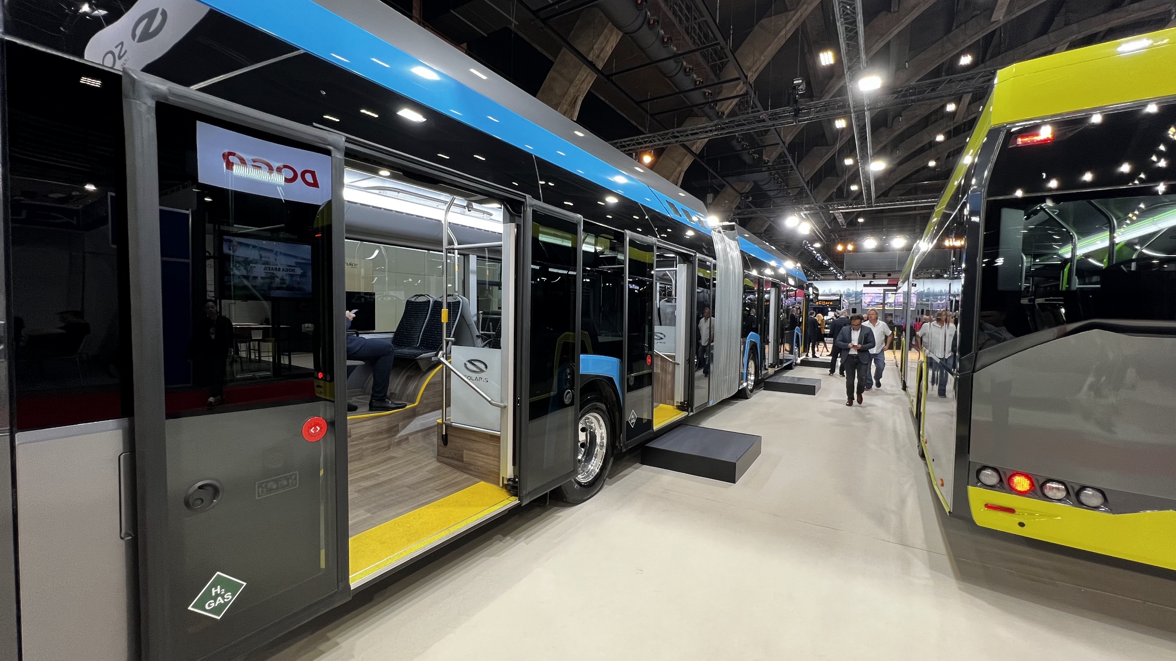 A brüsszeli Busworld Europe seregszemlén a Solaris két nulla károsanyag-kibocsátású csuklóssal, egy hidrogén üzemanyagcellás hajtásrendszerrel, valamint egy továbbfejlesztett, már motortornyot nélkülöző, a piacon egyedülálló akkukapacitással szerelt, tisztán elektromos hajtású Urbinóval képviselteti magát.