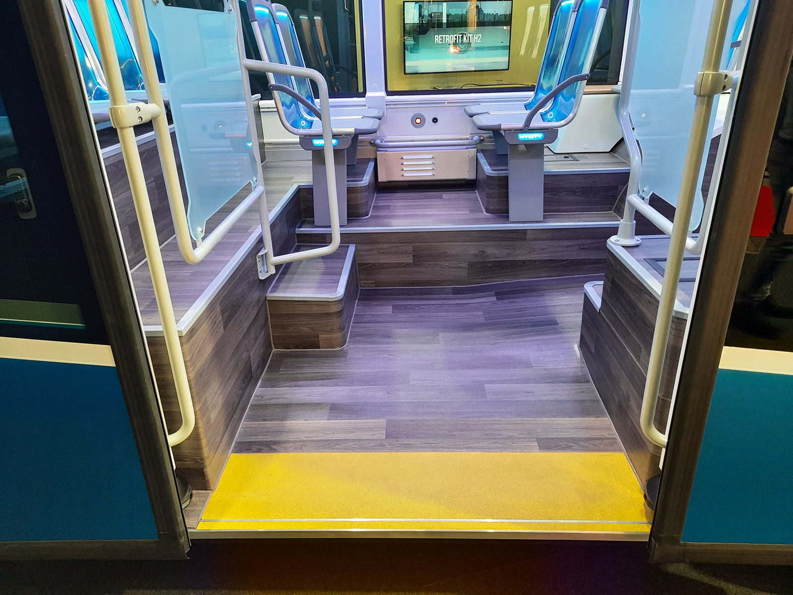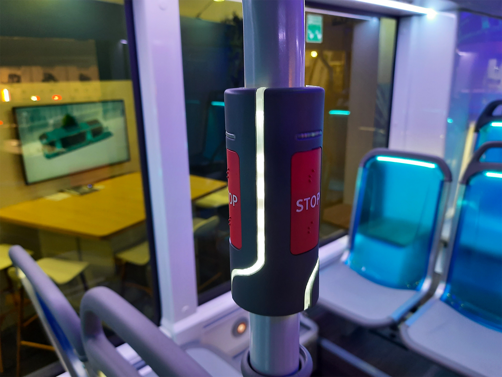 A járművezető franciásan magas üléspozícióban, Actia PODIUM 2 típusú műszerfal mögött foglal helyet – ez a 2019-ben megjelent kezelőpult az utóbbi években nagy népszerűségre tett szert a buszgyártók körében, többek között az Iveco/Heuliez, a CaetanoBus, a Switch Mobility, az Ikarus, a MAZ, az Anadolu Isuzu, a Yutong és az MCV egyes városi modelljeiben is találkozhatunk vele.