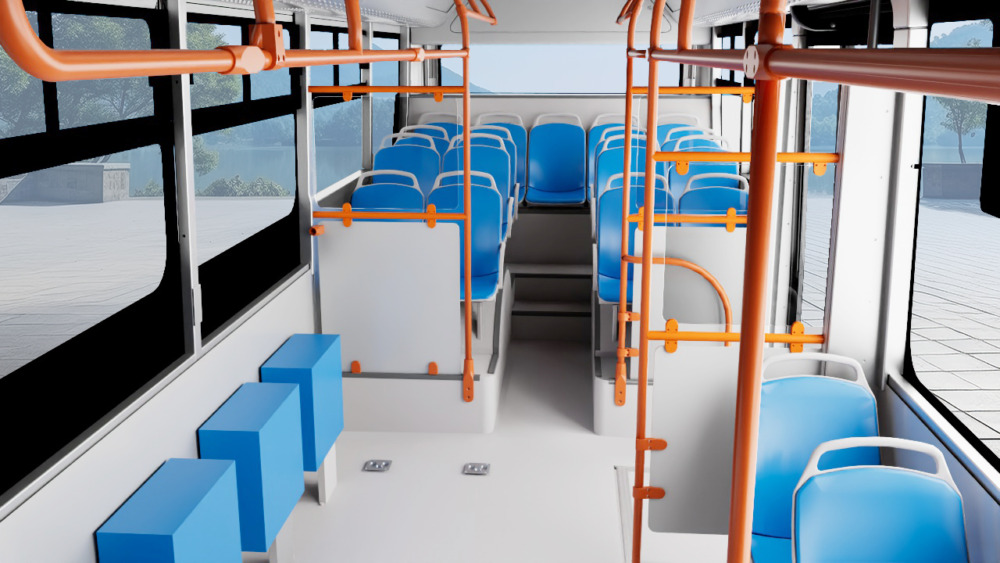A 8990 mm hosszú, 2300 mm széles és 3255 mm magas elektromos midibusz legfeljebb 61 fő befogadására alkalmas utastere a gyári látványtervek alapján teljes hosszban alacsonypadlós lesz. A prezentációban bemutatott kétajtós, viszonylag sok állóhellyel rendelkező városi kivitel mellett a tervek szerint készül majd egy elővárosi forgalomra szánt egyajtós változat is gyári grafikákon láthatónál több ülőhellyel.