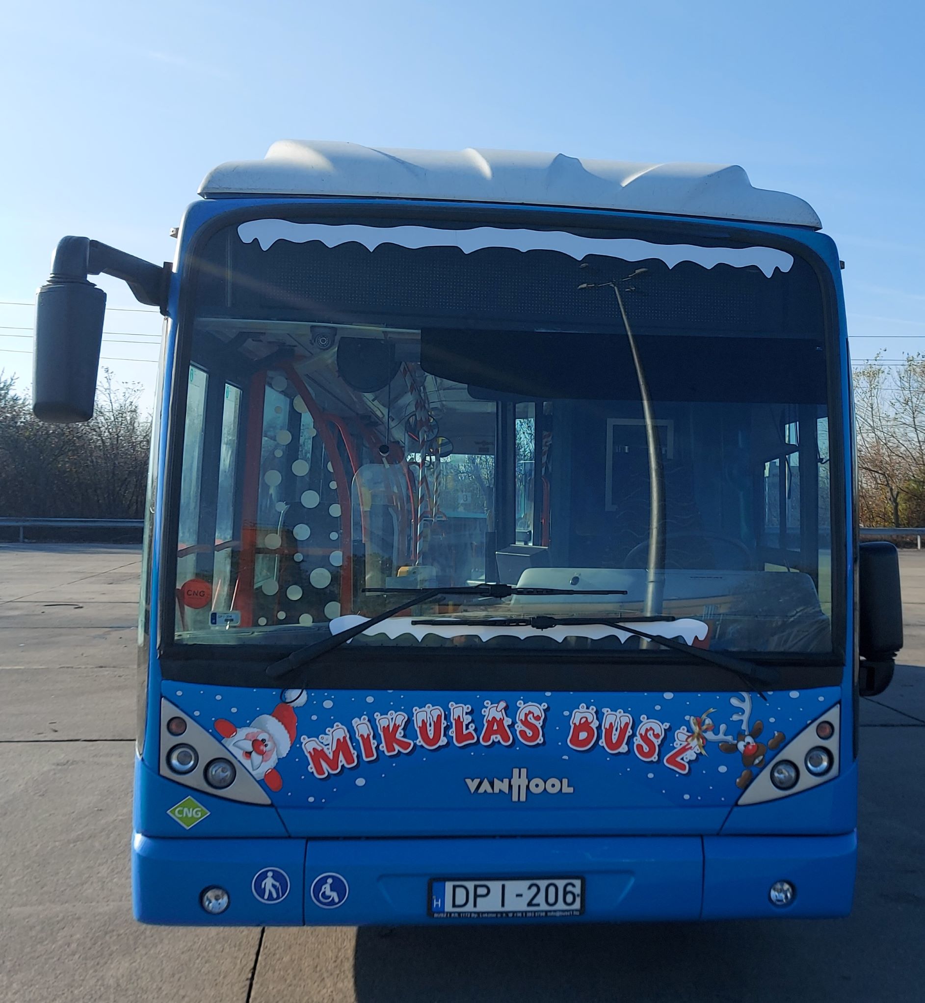 A BKV munkatársai az elmúlt évekhez hasonlóan az idén is a társaság egyik környezetbarát, gázüzemű, teljes hosszban alacsonypadlós Van Hool newA330 CNG típusú autóbuszát díszítették fel, amely 2019 óta látja el BKV adventi Mikulásbuszának feladatait. A Budapesten eredetileg MPW-605 rendszámmal közlekedő, dijoni eredetű autóbusznak már a rendszáma – DPI-206 – is különleges, összeolvasva ugyanis (a BKV hagyományos azonosító számozása szerint, 12-06 formában – a szerk.) a Mikulás érkezésének dátumát, december 6-át kapjuk. A vidám, ünnepi külső díszítés mellett a jármű belső terében is meghitt, karácsonyi dekoráció várja az utasokat, hozzájárulva az ünnepváráshoz – fogalmaz közleményében a társaság.