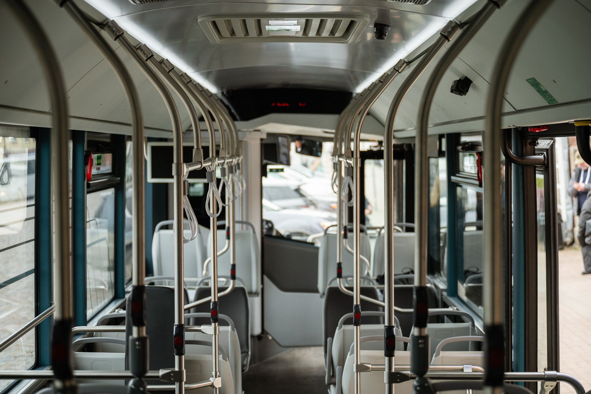 A 35 utasüléssel szerelt demókocsi háromajtós kialakítású, 2-2-2 elrendezésben. A teljes szélességű, kétszárnyú utasajtók közül az első bolygó-, a középső és a hátsó pedig lengő-toló mechanizmussal nyílik. Az utastér az eddig bemutatott Scania emblémás kivitelekkel ellentétben teljes hosszban alacsonypadlós kialakítású, a hátsó futómű és a már említett motortorony környékén a szükséges dobogókkal, bár ezek magassága a gyártó állítása szerint sehol nem haladja meg a 200 mm-t. További eltérés a Scania gépészetre épülő változatokhoz képest, hogy a buszvezető itt Actia gyártmányú műszerfal mögött foglal helyet.