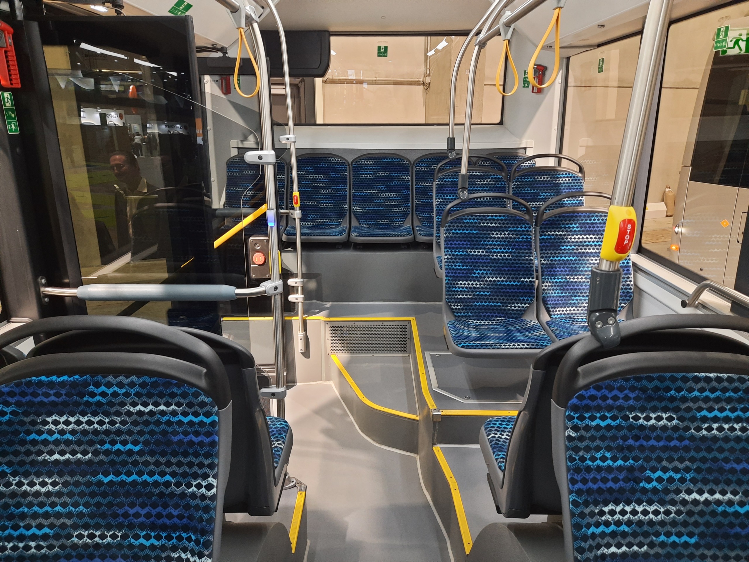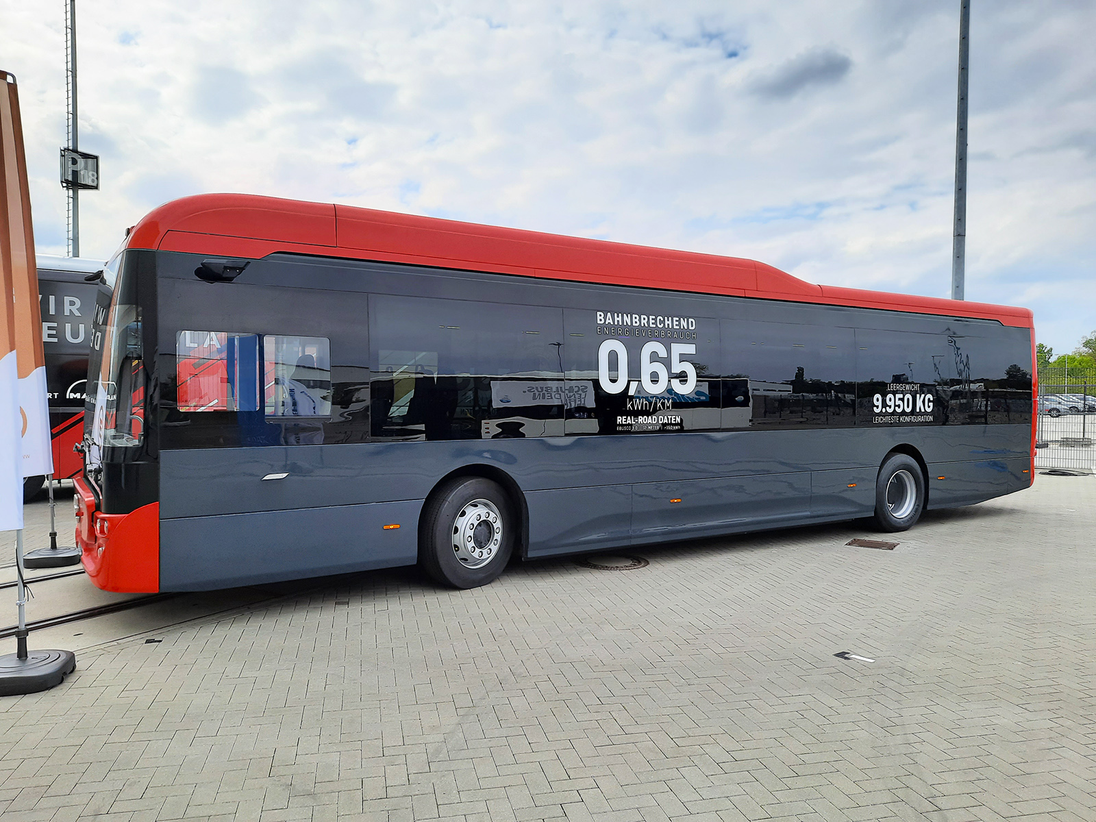 Akárcsak két éve, idén is egy már eladott, leszállításra kész ügyféljárművel vett részt a berlini seregszemlén az Ebusco, ám ezúttal már a kompozit karosszériás Ebusco 3.0 típussal, amelyet egy, a Hollandiában szolgáltató Connexxion (Transdev Nederland) társaság részére készült alacsony belépésű, 1-2-0 ajtókiosztású példány képviselt. Az akár 100 fő szállítására is alkalmas, 43 ülőhellyel szerelt kivitelt ugyanúgy a kvázi-kerékagymotoros ZF AxTrax AVE portálfutómű mozgatja, mint a teljes hosszban alacsonypadlós változatot, így a hátsó traktusban megemelt padlószintet csak a nagyobb (a gyáriak elmondása szerint 380 kWh összkapacitású) lítium-vasfoszfát (LFP) akkumulátorcsomag indokolja, amellyel a busz ideális esetben akár 575 kilométert is képes megtenni egyetlen feltöltéssel. A kevésbé szoros gépészeti kötöttségeket mutatja, hogy mindössze egyetlen lépcsőfok vezet a második utasajtó mögötti térrészbe, a közlekedőfolyosó pedig alacsonyabban fut a belső égésű motorral szerelt low entry típusok esetében megszokottnál. Emiatt viszont a kerékdobok is jobban betüremkednek az üléstér padlójába, ezért a hátsó részük csapottabb, hogy teljesítsék a lábtér lejtésérre vonatkozó ENSZ-EGB előírásokat.