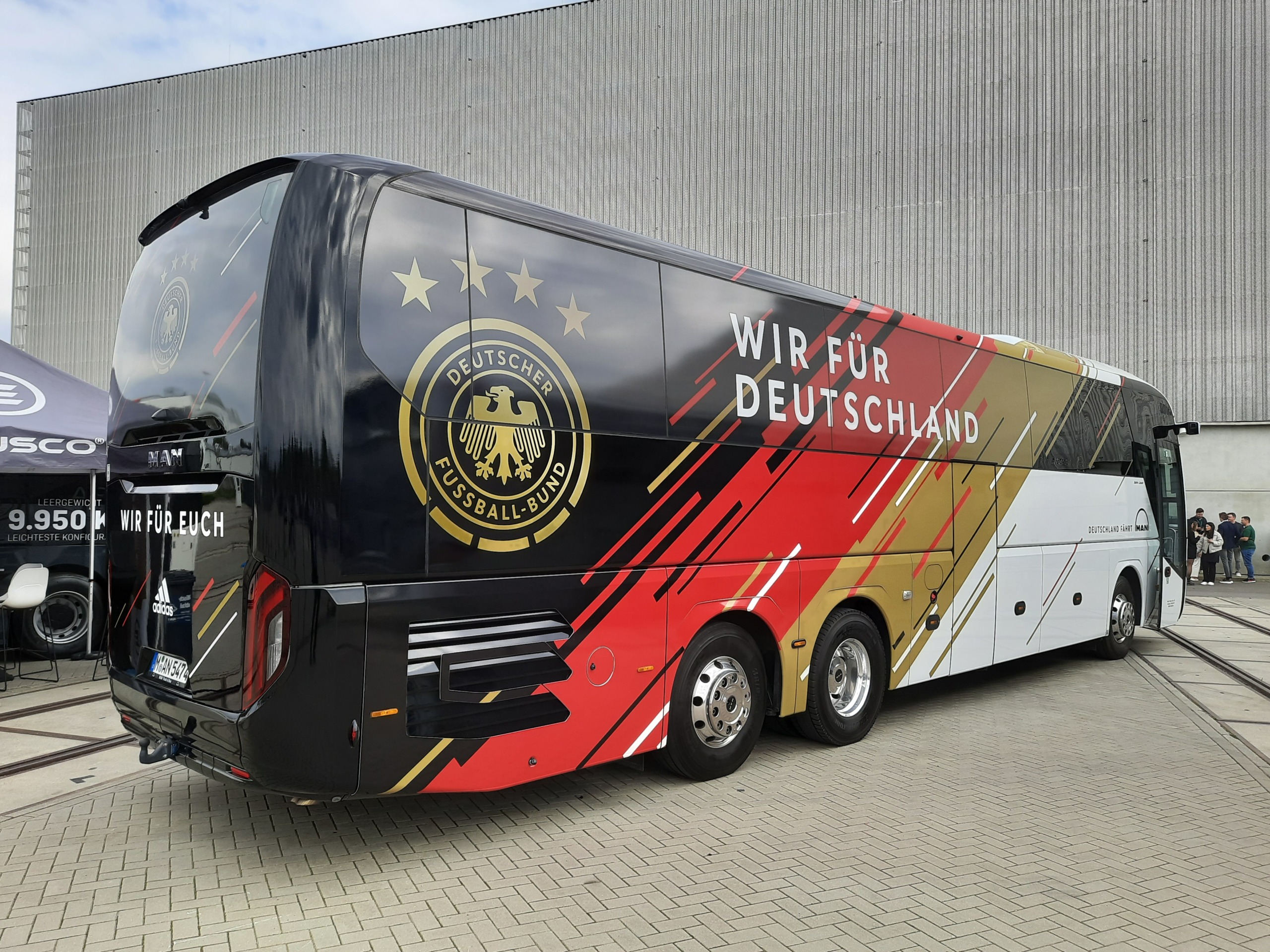 Természetesen a szabadtéri területre is jutott az oroszlános gyártó buszaiból, ahol egy igazi különlegességet, a német labdarúgó-válogatott aktuális csapatszállító járművét, egy 13,4 méter hosszú háromtengelyes Lion’s Coach C luxus turistabuszt lehetett megtekinteni. A busznak és vezetőjének ezúton is minden jót és sok balesetmentes kilométert kívánunk, de azért reméljük, hogy utasaiknak nem lesz túl sok okuk az örömre június 19-én…