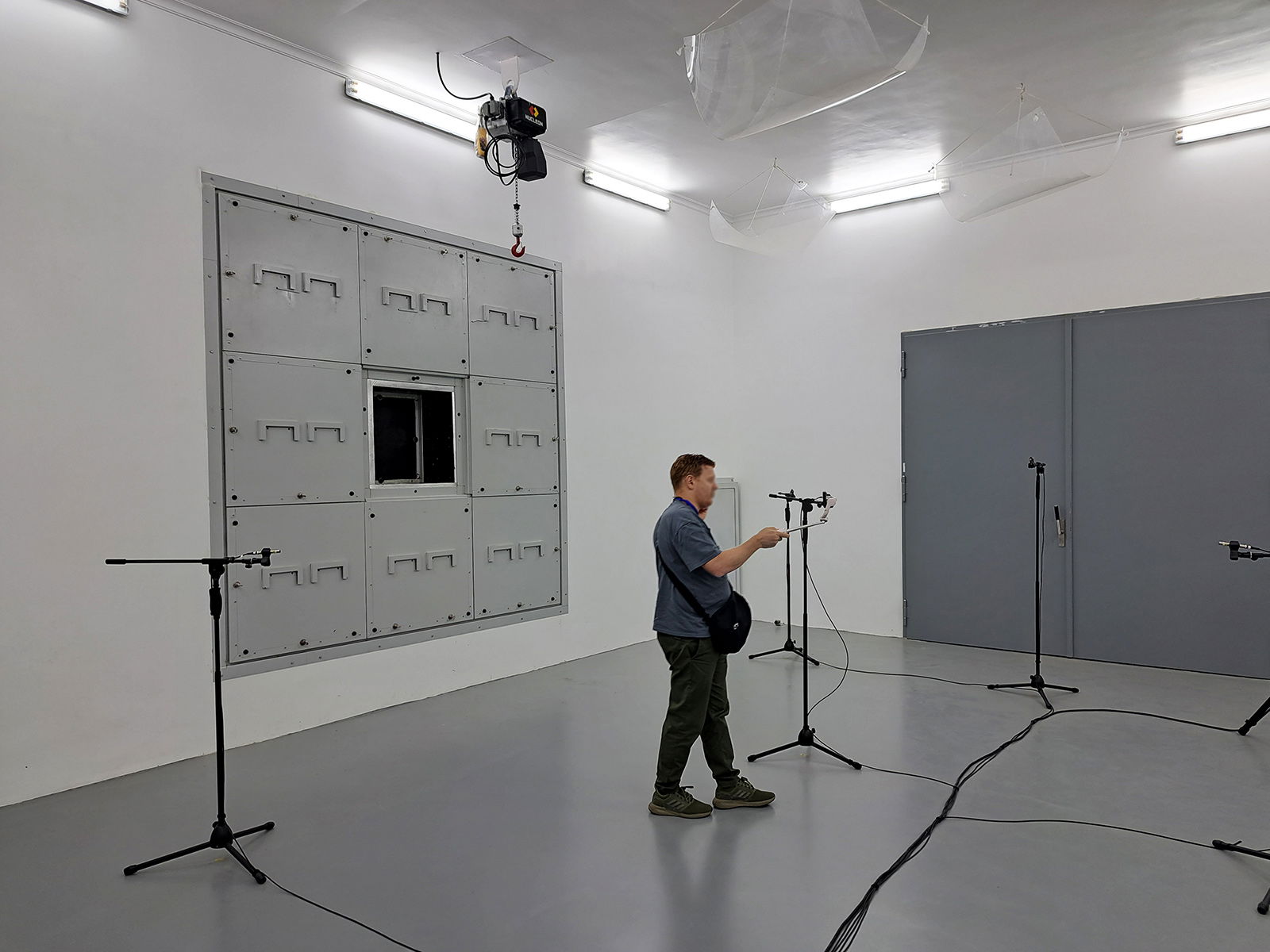A buszokban alkalmazandó új hangszigetelő és -elnyelő anyagok tesztelését egy akusztikai mérésekre berendezett létesítményben végzik. Ez lényegében két, egymástól elkülönített helyiségből áll. Közülük az egyik egy süketszoba, amelynek egyedüli kapcsolatát a túloldali teremmel maga a vizsgálandó anyag jelenti – ez a második szoba lényegében üres, leszámítva az itt elhelyezett mikrofonokat, amelyek segítségével mérik a kísérletek során átbocsátott hangot.