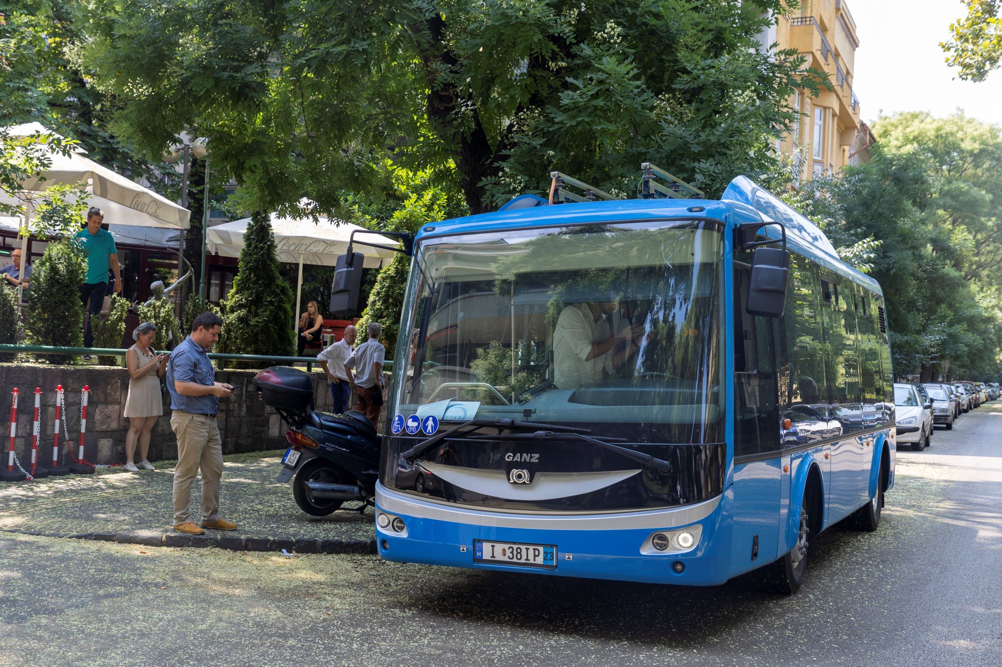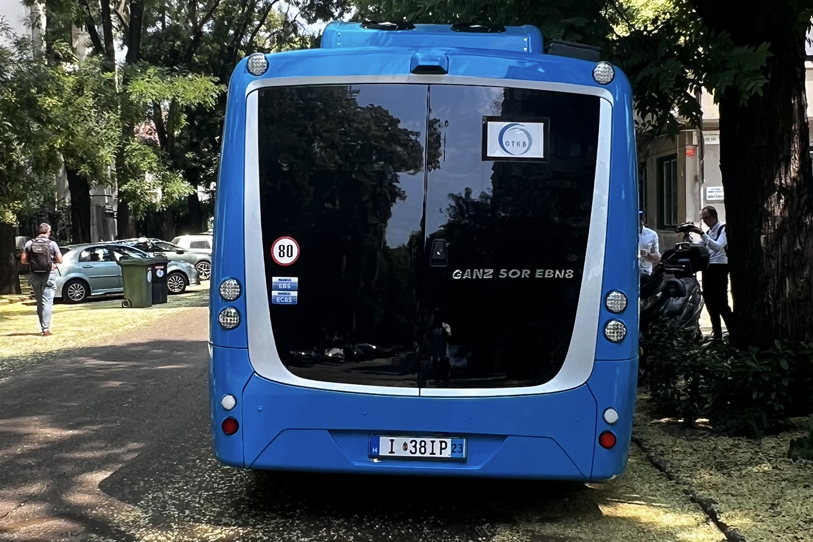 A Városliget közelében tartott sajtóeseményen először levetítették a tavaly októberi 53. Autóbusz Szakértői Tanácskozáson általunk már látott gyári prezentáció kibővített változatát, a rendezvénynek otthont adó Hotel Benczúr épülete előtt pedig megjelent a nap főszereplője, a GTKB saját hajtásrendszerével felszerelt Ganz-SOR EBN8 elektromos midibusz egyelőre egyetlen létező példánya is, amely Bajáról érkezett Budapestre.