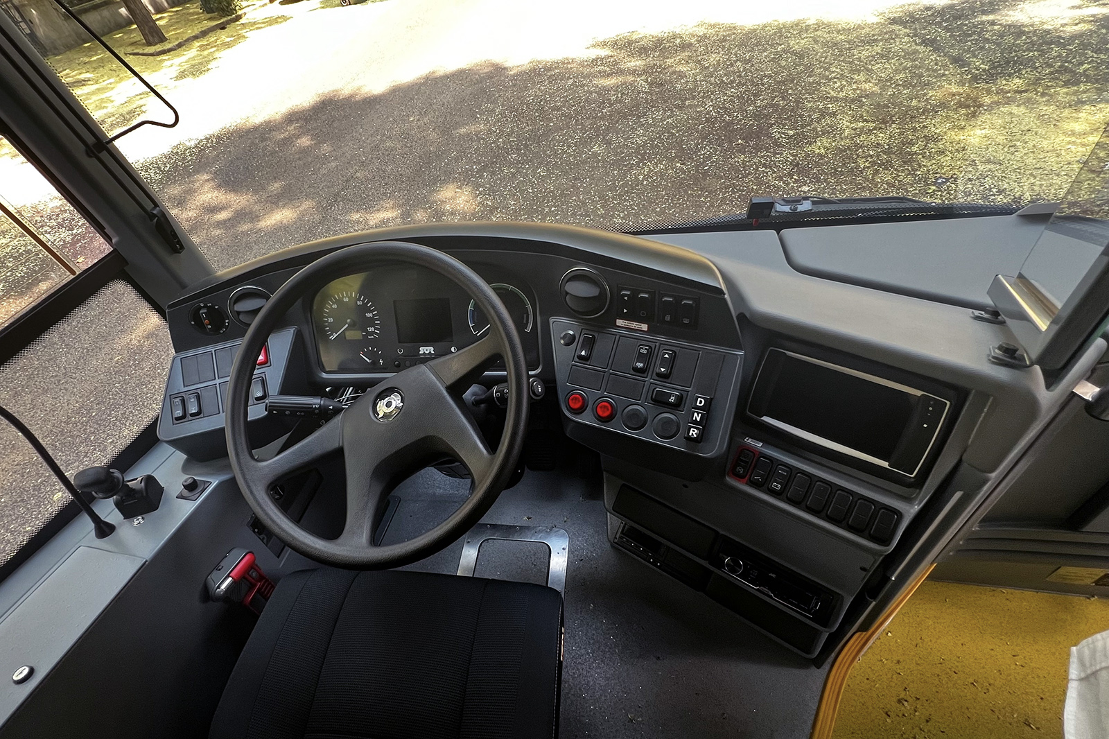 A feketítés kívülről jól feledteti, hogy a busznak valójában egyáltalán nincs hátsó szélvédője. A kétszárnyú motortérajtó jó hozzáférést biztosít