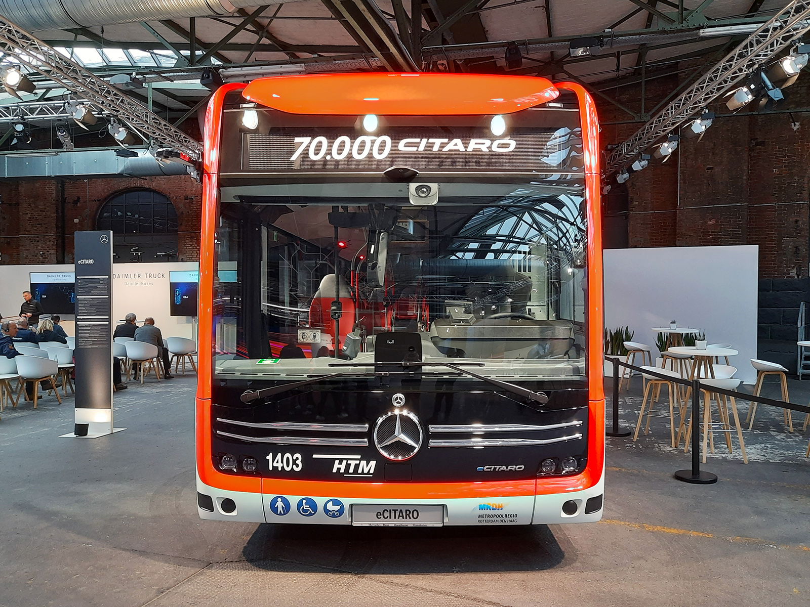 Az idei rendezvényen a csillagos márka egy elismerésre méltó jubileumot is ünnepelt, elkészült ugyanis az 1997 óta piacon lévő Citaro típuscsalád 70 ezredik példánya, egy, a hágai HTM Personenvervoer NV közlekedési társaság részére szállítandó, szóló kivitelű eCitaro villanybusz. Az 1-2-2 ajtóképletű, lengő-toló mechanikájú utasajtókkal és összesen 30+1 ülőhellyel szerelt járművet a rendezvényen jelképesen át is adták a közlekedési társaság helyszínen lévő operatív igazgatójának (a tényleges átadóceremóniára később, a busz rendeltetési helyén kerül majd sor, a 95 darabos széria többi tagjával együtt).