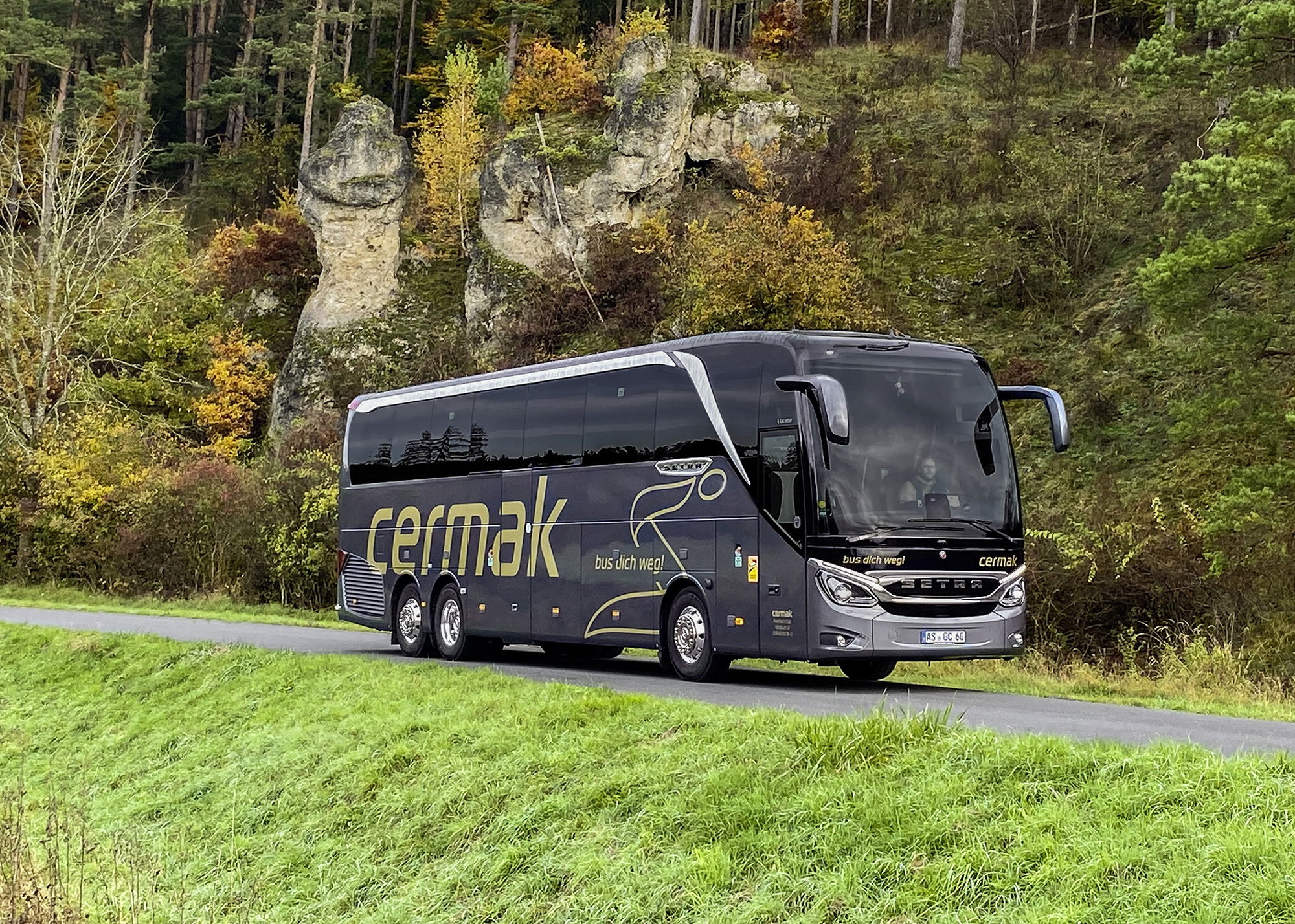 A bajorországi Cermak GmbH & Co. KG nemrégiben vette át a hatvanadik Setra autóbuszát, a címlapképünkön látható vadonatúj, TopClass szériás Setra S 516 HDH képében. A jubileumi háromtengelyes luxus turistabuszt 48 darab Ambassador fantázianevű, állítható fejtámlás utasüléssel szerelték fel, az utazási élményt az üvegezett panorámatető fokozza.