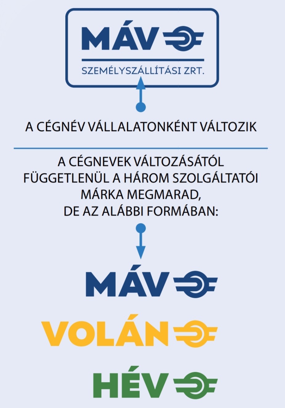 A mindennapi közlekedés során az utasok számára a MÁV Személyszállítási Zrt. válik a leginkább látható és érzékelhető szolgáltatóvá, hiszen az új, egységes szervezet felel majd a vasúti, közúti és a HÉV-közlekedés összehangolt működtetéséért. Az utazók a MÁV, VOLÁN és HÉV márkanevekkel találkoznak majd, amelyek továbbra is egyszerűen azonosíthatók és megszokottak maradnak.