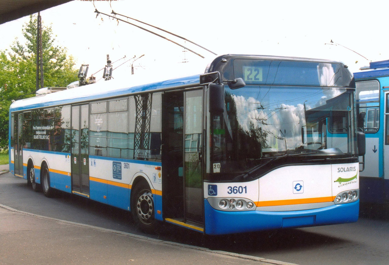 Ezen folyamat egyik fontos mérföldköve volt a háromtengelyes trolibuszok kifejlesztése, amely – a hivatalos verzió szerint – közvetlenül a DPO akkori ügyvezető igazgatójának kezdeményezésére indult el. A koncepciót a Solaris lengyel képviselőivel 2002 májusában, az ostravai trolibusz-közlekedés 50. évfordulójának ünnepségein vitatták meg, amelynek eredményeként zöld utat kapott a projekt. A megállapodás értelmében a 12 méteres karosszériát 2002 októberében, míg a 15 méteres változatot 2002 novemberében kellett volna leszállítani, ám a gyártási folyamat csúszása miatt mindkét váz körülbelül egy hónapos késéssel érkezett meg Ostravába. A prototípusok fejlesztési költségeit négy vállalat viselte egyenlő arányban: a DPO, a Solaris, a Cegelec, valamint – meglepő módon – az Inekon Group. Utóbbi szerepe a projektben nem teljesen tisztázott, és az sem kizárható, hogy egy félreértés miatt szerepelt az együttműködő felek között, míg a valódi partner a ČKD Pragoimex lehetett, amely a járművekhez szükséges villamos vontatómotorokat biztosította. A háromtengelyes, 14 590 mm hosszú, 2550 mm széles és lehúzott áramszedőkkel 3300 mm magas, 2-2-2 ajtókiosztású prototípus trolibusz hajtásrendszerének beépítése 2003 márciusában fejeződött be, majd ezt követően megkezdődtek a próbajáratok, 3601-es pályaszámmal. A tesztek során azonban eleinte teljesítményátviteli problémák jelentkeztek: a kiválasztott Pragoimex TAM 1009 C típusú vontatómotor 4500 fordulat/perc maximális fordulatszámmal üzemelt, és a hajtott B-tengelyre 3,5 méteres távolságon keresztül kellett a teljesítményt átvinni. Ez jelentős mechanikai terhelést okozott a hajtásláncban, ami a tesztidőszak egyik legnagyobb kihívásává vált. A folyamatos fejlesztések és sikeres próbaüzemek eredményeként a jármű hamarosan megkezdhette a hosszabb távú tesztfutásokat: a prototípus 4800 kilométert futott üresen és teljes terheléssel (amely a maximális, 155 fős utasszámot szimulálta), ezt követően 2003. április 24-től elindultak az utasforgalmi próbajáratok, elsőként a 108-as vonal egyik délutáni járatában.