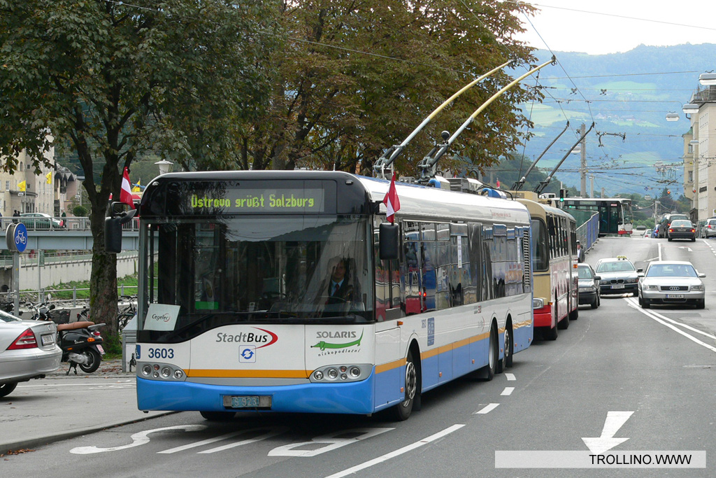 A 3603-as trolibusz ezzel szemben már gyártásakor megkapta a korabeli ostravai kék-fehér színkombinációt sárga csíkkal, 2004 és 2006 között pedig több bemutatókörúton is részt vett, így többek között Zlínben, Pardubicében, Szófiában, Vratsában, Eberswaldében és Salzburgban is vendégszerepelt. A 3601-es prototípus már korábban is nemzetközi teszteken bizonyíthatott, többek között a balti államokban is kipróbálták 21 évvel ezelőtt. A jármű Lettországban és Litvániában teljesített próbafutásokat, utóbbi helyen különösen nagy sikert aratva, hiszen ennek eredményeként Vilnius összesen több mint 40 darabot rendelt a típusból. A 15 méteres Trollino hivatalosan a csuklós járművek gazdaságosabb alternatívájaként került bemutatásra. A háromtengelyes kialakítás lehetővé tette a nagyobb teherbírást, így papíron az utaskapacitása elérhette a csuklós járművek szintjét. A gyakorlati tapasztalatok azonban eltértek az elméleti elvárásoktól: bár a járművek 2,5 méterrel hosszabbak voltak, mint a 12 méteres normál szóló változatok, a megnövekedett hossz jelentős részét a harmadik tengely foglalta el. Ennek következtében az állóhelyek száma alig nőtt, miközben a kerékdobok miatt az ülőhelyek elrendezése is korlátozott maradt. A konstrukciós sajátosságok végül Ostravában is a 15 méteres járművektől való elforduláshoz vezettek, nemcsak a trolibuszok, hanem az autóbuszok esetében is. A közlekedési vállalat a csuklós járművek beszerzése mellett döntött, felismerve, hogy a háromtengelyes modellek nem nyújtanak kellő előnyt az üzemeltetés során.
