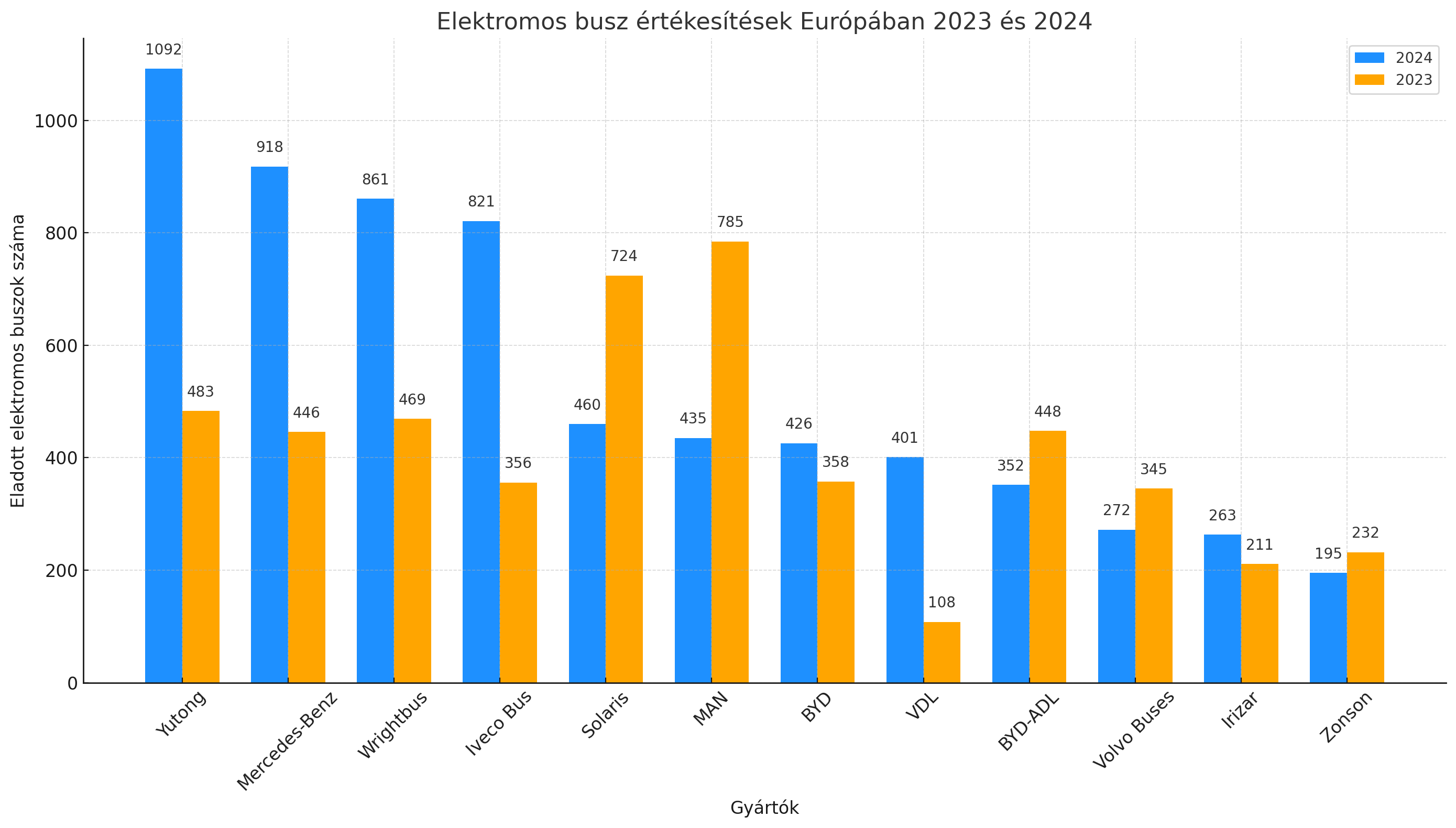 Piaci szempontból 2024 egyik legnagyobb, bár nem teljesen előzmény nélküli meglepetése a Yutong előretörése volt, amely 1092 darab elektromos busz regisztrációjával a legnépszerűbb márkának bizonyult Európában. Ez különösen figyelemre méltó eredmény, hiszen a kínai cégóriás 2023-ban még csak 483 ilyen autóbuszt állítottak forgalomba, így a növekedés meghaladta a 125%-ot. Ez teljesítmény azonban nem csak a Yutong európai jelenlétének erősödését mutatja, hanem egyúttal a kínai gyártók egyre markánsabb térnyerését is jelzi a kontinensen.
