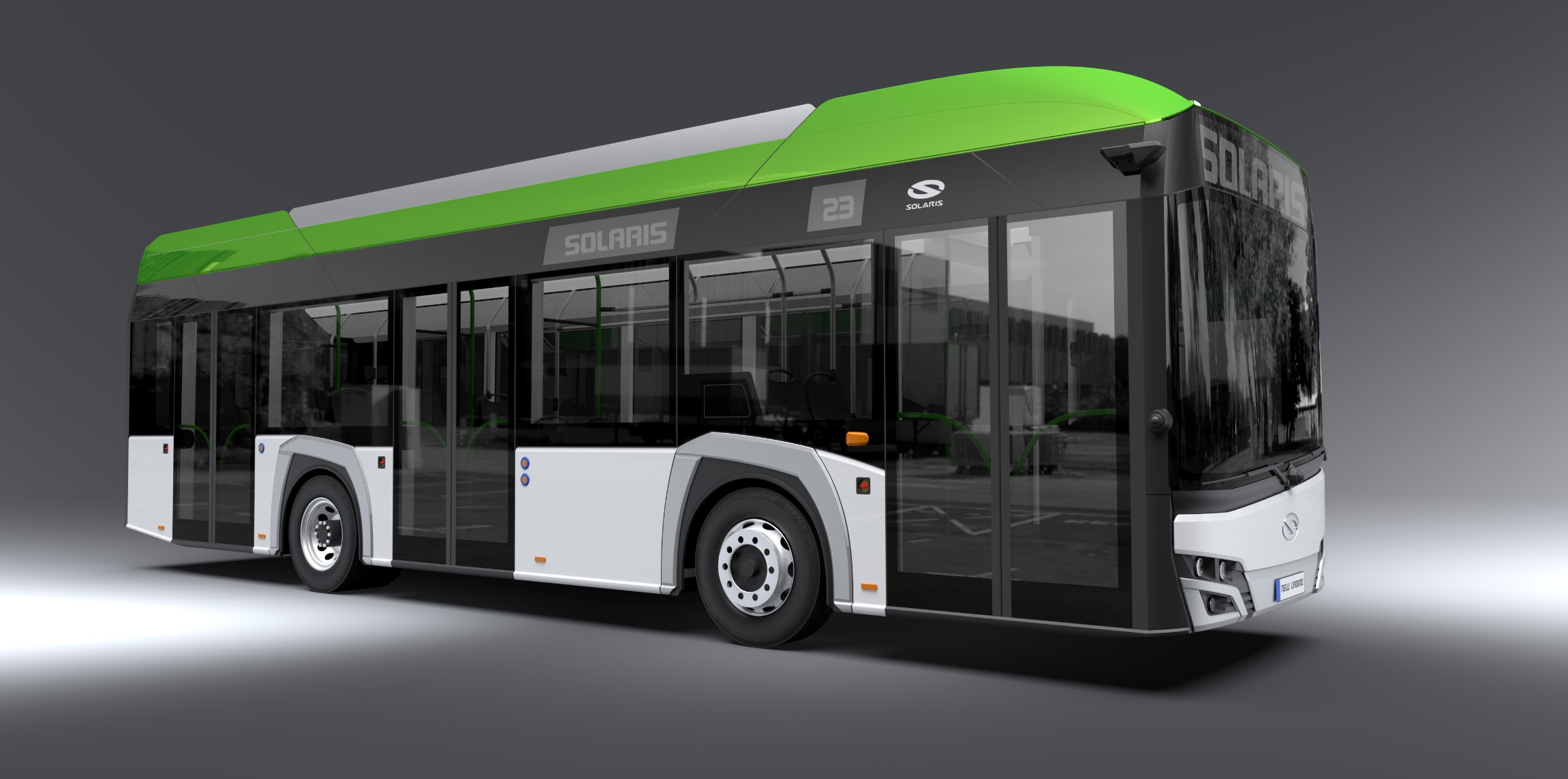 Szintén a fejlesztés végéhez közeledik a Solaris vadonatúj, tisztán elektromos hajtású helyközi típuscsaládja (címlapképünkön), amelynek érkezését éppen egy éve jelentették be. Bár ezúttal is csak számítógéppel generált grafikákat láthattunk az új modellekről, az új képek már sokkal közelebb állnak a végleges változathoz: a vonalak finomodtak, eltűnt például a harmadik ablakoszlopnál lévő masszív keret, ami a tavalyi rajzokon még látható volt. Ezen kívül viszont több konkrétum nem derült ki a már tavaly elmondottakhoz képest: az új termékvonal alacsony belépésű és normálpadlós kivitelben készül majd, bemutatkozása pedig 2026 első negyedévére várható.