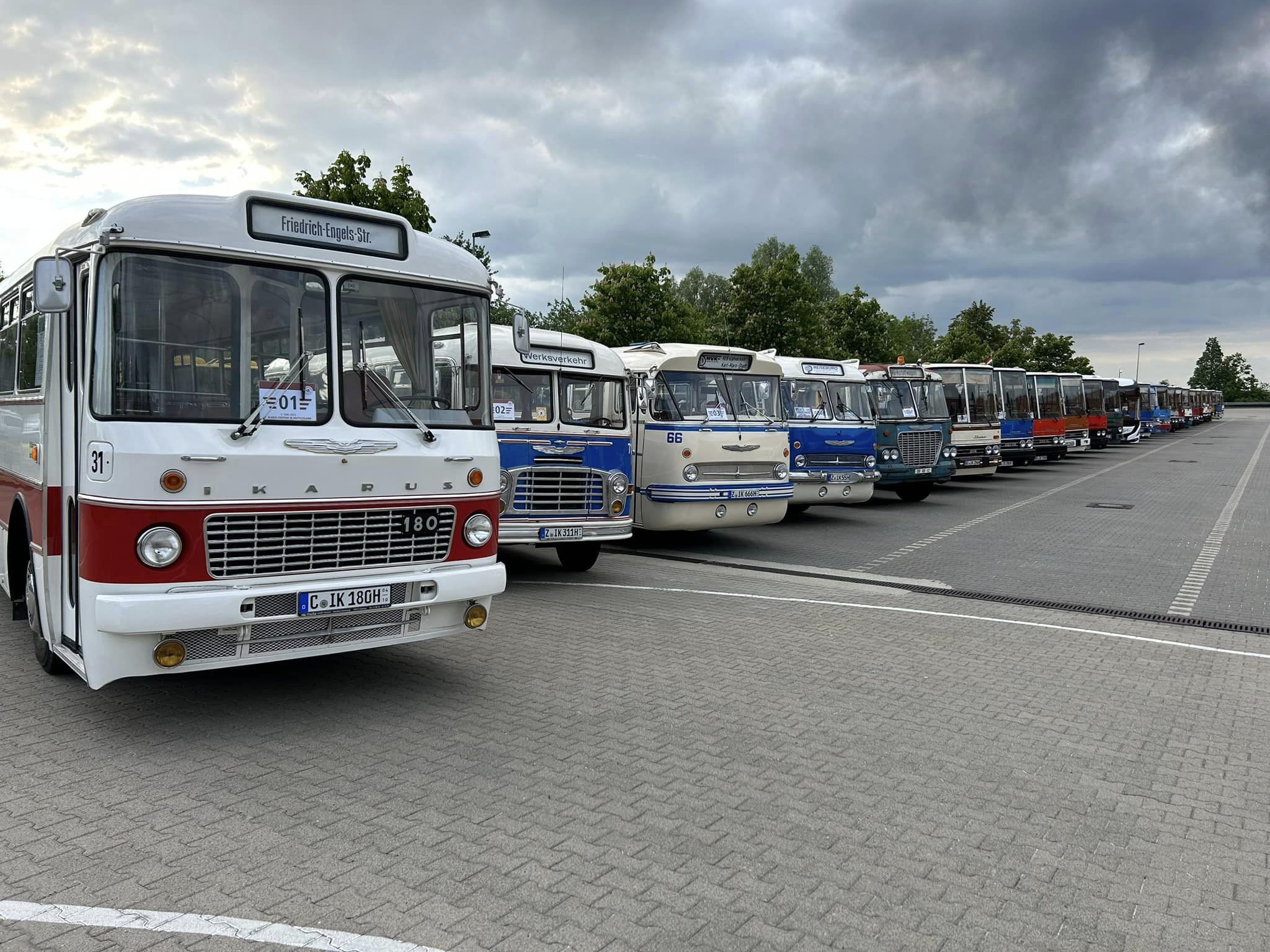 A rendezvényen öt Magyarországról érkező, kizárólag magángyűjtők által megőrzött Ikarus autóbusz is részt vesz, amelyek között több korszakos típus is szerepel. Az eddigi információk alapján a magyar delegációt egy Ikarus 256-os, két C56-os, valamint az egykori Ikarus EAG két terméke – egy E95-ös, valamint egy F15-ös midibusz – alkotja. Lengyelországból egy Ikarus 260-as érkezik, amely korábban szintén hazánkban közlekedett, a legszélesebb választékot pedig természetesen a német résztvevők biztosítják. Az általuk kiállítottak közül kerül ki az esemény legidősebb járműve, egy 1959-es gyártású Ikarus 311-es, de látható lesz több Ikarus 55-ös és 66-os „faros”, az egyetlen fennmaradt kétajtós, helyközi kivitelű Ikarus 180-as, valamint a 200-as sorozat több modellje is – ez utóbbiakból érkezik a legtöbb példány. A nosztalgiajárművek mellett a jelenkort képviselve az MBB közlekedési társaság két székesfehérvári gyártású, 2-2-0 ajtóképletű Ikarus 120e villanybusza is aktív szerepet kap a rendezvényen. Ezek a járművek a találkozó kiszolgálására indított, 408-as jelzésű shuttle járatok forgalmában vesznek majd részt, a helyszín ugyanis kizárólag tömegközlekedéssel közelíthető meg. A járatok a meiningeni Landratsamt parkolóból indulnak, és több városi megállót is érintenek – az első 9:30-kor indul, az utolsó visszajárat 16:00 után közlekedik. A vonalon Ikarus nosztalgiabuszok és az MBB közforgalmú járművei váltják egymást, utóbbiakon az MBB díjszabása érvényes (az egy útra szóló menetjegy 2,10 euróba kerül), míg az oldtimer buszokra külön nosztalgiatarifa vonatkozik, és nem érvényesek rajtuk az utazási bérletek vagy kedvezmények sem. Fontos, hogy a nosztalgiajárművek nem akadálymentesek, így azokon kerekesszék és babakocsi szállítása sem lehetséges. A program zárásaként 16 órakor indul a rendezvény látványos járműfelvonulása, amely során számos résztvevő Ikarus autóbusz egyszerre halad majd végig Meiningen utcáin. A konvoj csak két megállónál, a Landratsamtnál és a vasútállomásnál áll meg, biztosítva a látogatók kényelmes visszajutását autójukhoz vagy a vasúti csatlakozáshoz.