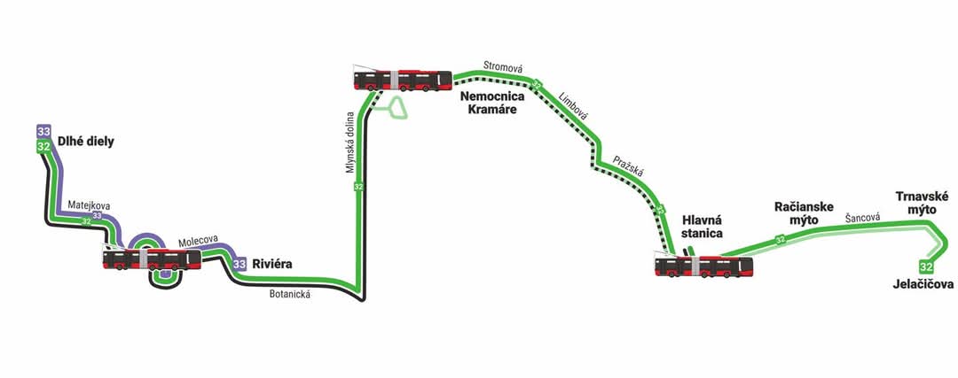 A most induló beruházás során több mint 7 kilométer hosszúságban épül ki új felsővezetékes hálózat, amely közvetlenül bekapcsolja a Dlhé diely lakótelepet Pozsony fő trolibuszhálózatába, egyben elérhetővé téve a Hroboňova utcai járműtelepet is. Ennek köszönhetően megszűnik a 33-as viszonylat szigetszerűsége.