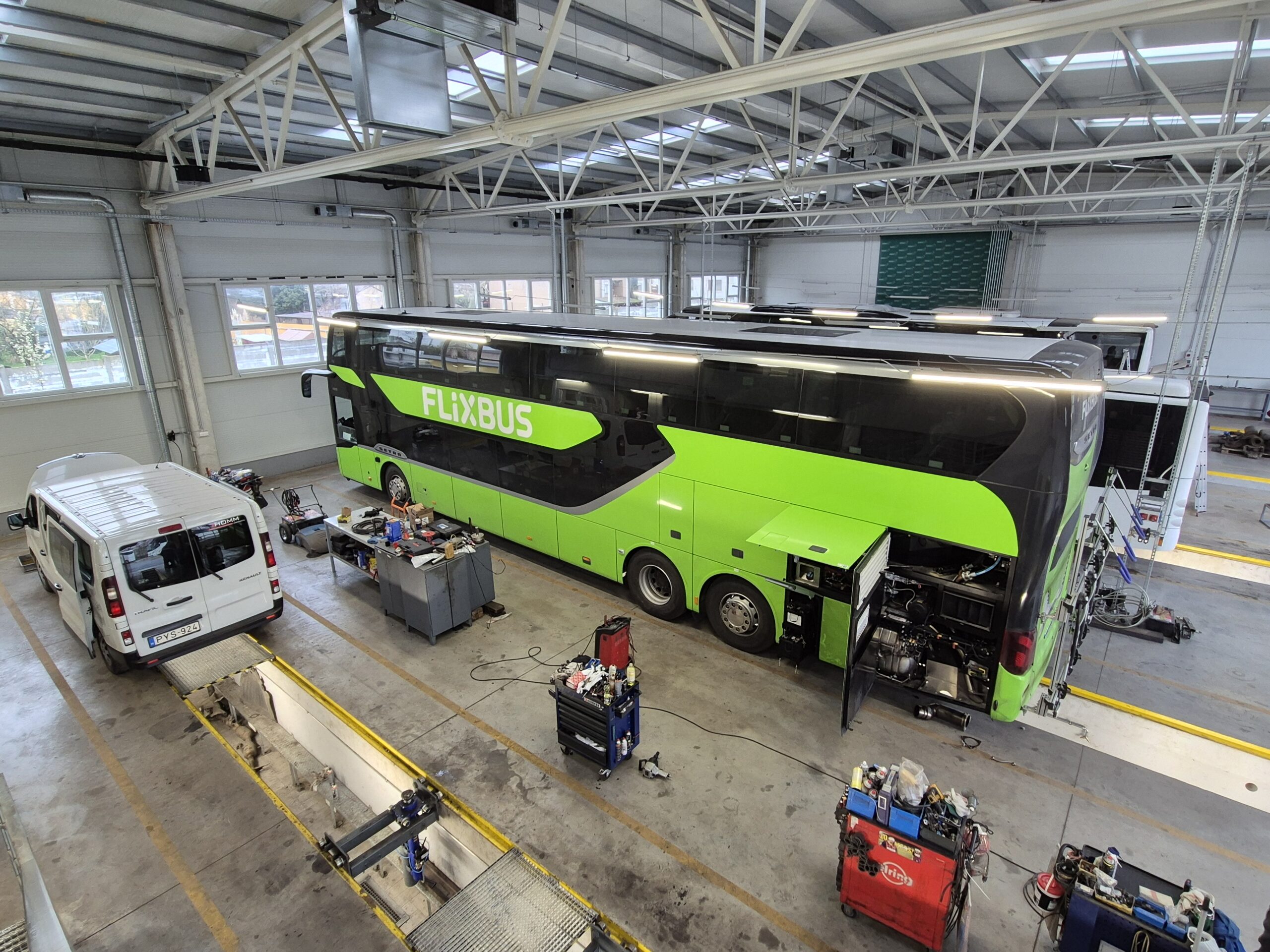A korszerű eszközpark révén a karambolos javítás, a biztosítási ügyintézés, az autóbuszok vázszerkezetének teljeskörű felújítása és fényezése vagy a klímák javítása és karbantartása ugyancsak rutin feladat.