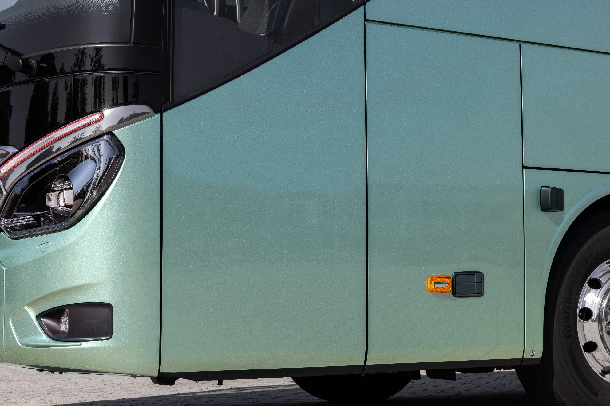 Az oldalirányú védelmet a második generációs Sideguard Assist rendszer látja el, amely immár nemcsak a jobboldali ajtófelőli oldalon, hanem a bal oldalon is aktív. A radaralapú technológia sávváltáskor és kanyarodáskor egyaránt figyelmeztet a jármű mellett tartózkodó akadályokra, gyalogosokra és kerékpárosokra. A rendszer 40 km/h felett sávváltás-asszisztensként is működik, és az autóbusz teljes sebességtartományában képes a veszélyes helyzetekre reagálni. Kiegészítő funkcióként a Frontguard Assist is rendelkezésre áll, amely alacsony sebességnél érzékeli az autóbusz előtti vakfoltban megjelenő tárgyakat vagy személyeket.