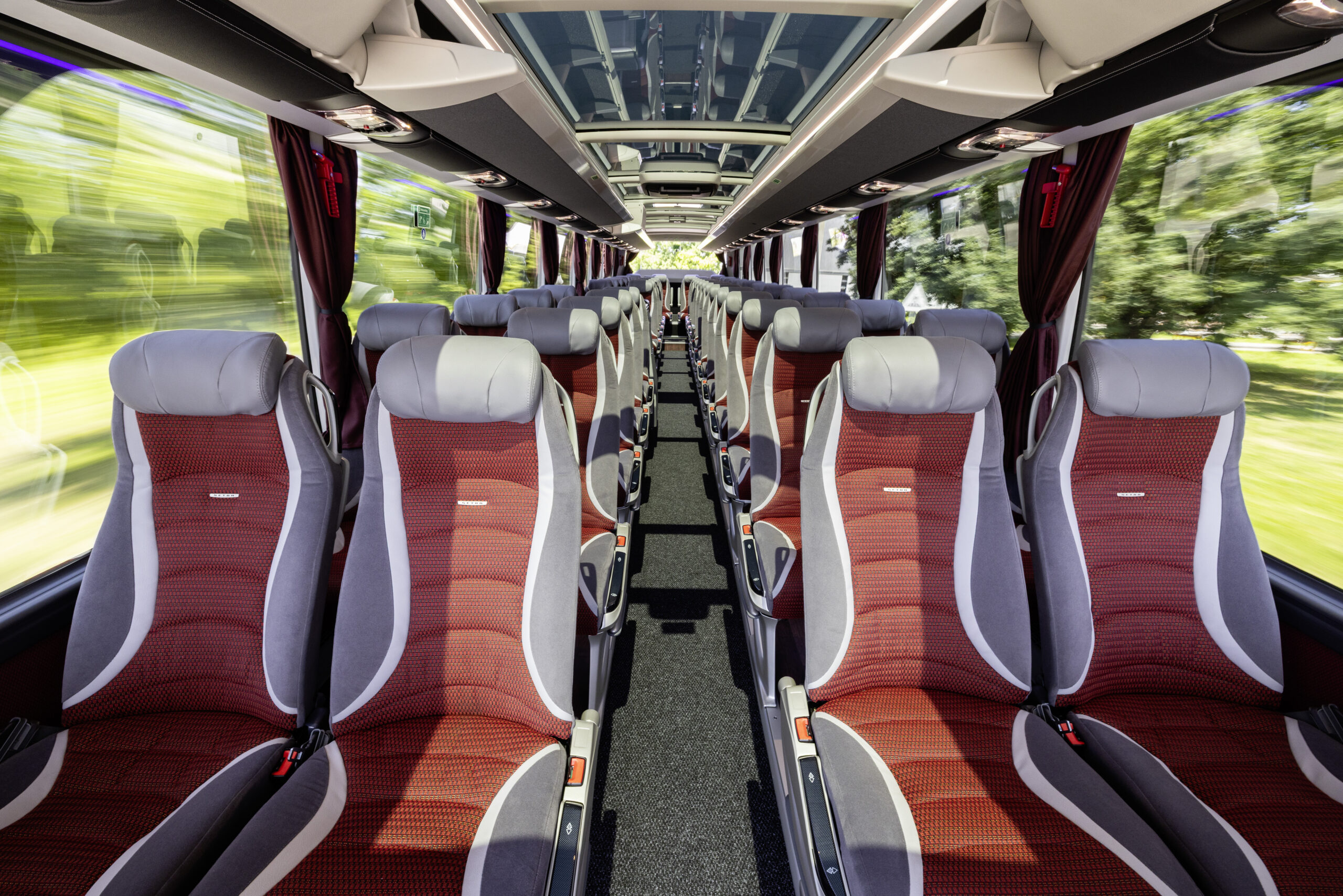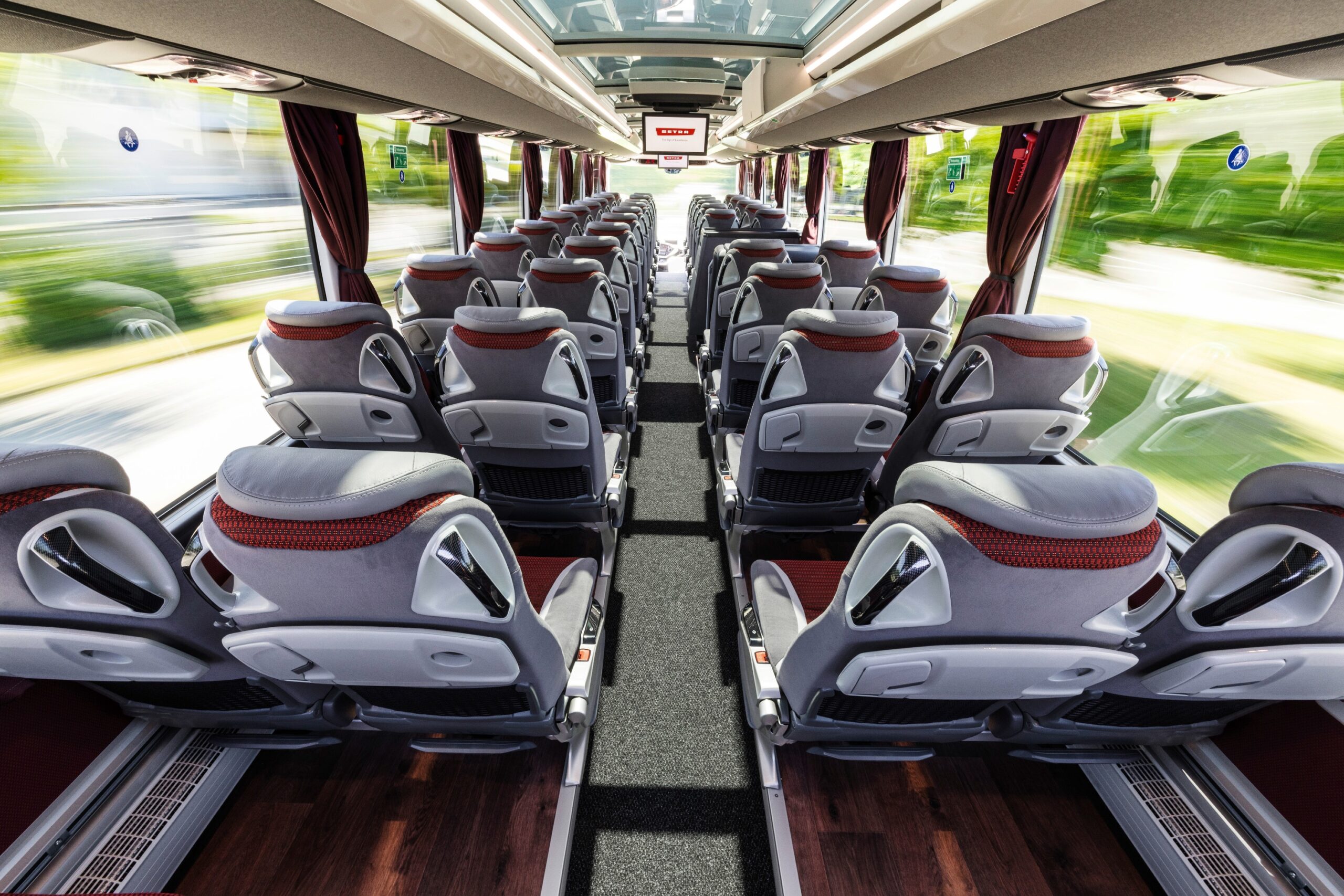 A külső formai megoldásokat átfogó biztonságtechnikai fejlesztések egészítik ki. A Setra turistabuszai nemcsak megfelelnek a 2024 júniusától kötelezően alkalmazandó General Safety Regulation (GSR) uniós előírásainak, hanem több ponton túl is teljesítik azokat. Minden kivitel alapfelszereltségként tartalmazza az Active Brake Assist 6 (ABA 6) elnevezésű vészfékasszisztenst, amely a Daimler saját fejlesztése, és jelenleg az egyik legfejlettebb ilyen rendszer az európai autóbuszpiacon.