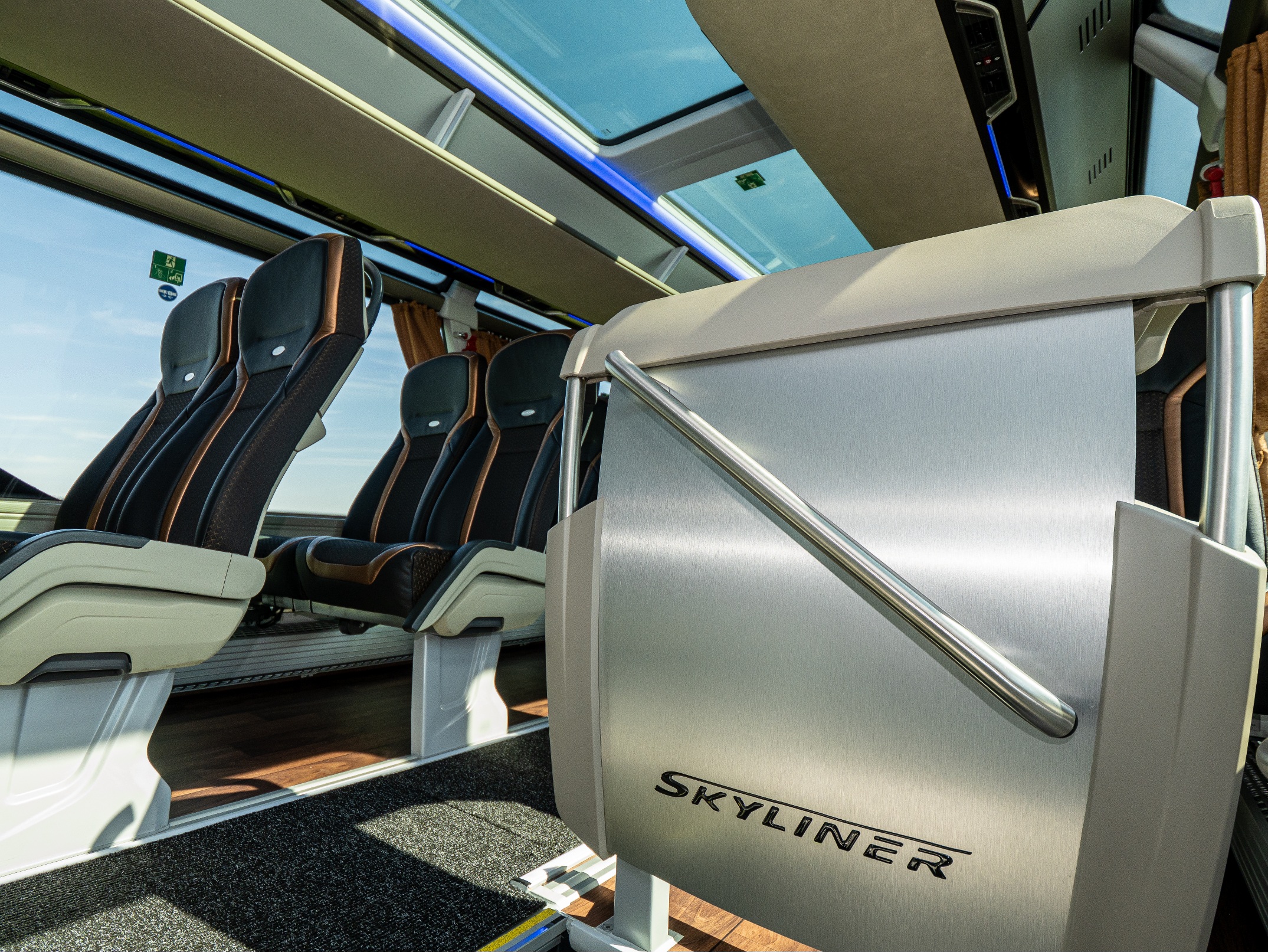 A Skyliner a gyártó szerint nemcsak a Neoplan kínálat zászlóshajója, hanem a fenntarthatóság, a hatékonyság és a biztonság területén is kiemelkedő eredményeket nyújt. A jármű nagy utaskapacitásával a konstrukció fizikai lehetőségeinek határát feszegeti, így az egy utaskilométerre vetített környezeti terhelés a legalacsonyabbak közé tartozik a közúti közlekedésben. A 12,5 literes, 520 lóerős (382 kW), közös nyomócsöves MAN D2676 LOH dízelmotorral és EfficientCruise 3 váltóprogrammal kiegészített 12 fokozatú, automatizált MAN TipMatic sebességváltóval szerelt ellátott emeletes autóbusz turista konfigurációban 83, a hosszú távú vonaljárati felhasználáshoz ajánlott „Skyliner Express” kivitel esetén pedig akár 96 utas szállítására is alkalmas, miközben a szén-dioxid-kibocsátás utaskilométerenként jóval tíz gramm alá csökken. Ezt a kedvező értéket független tesztek is megerősítették. Az akár 11 m³-es csomagtér szintén kiemelkedő a kategóriában, míg az alacsonypadlós alsó szinten két kerekesszék is elhelyezhető.
