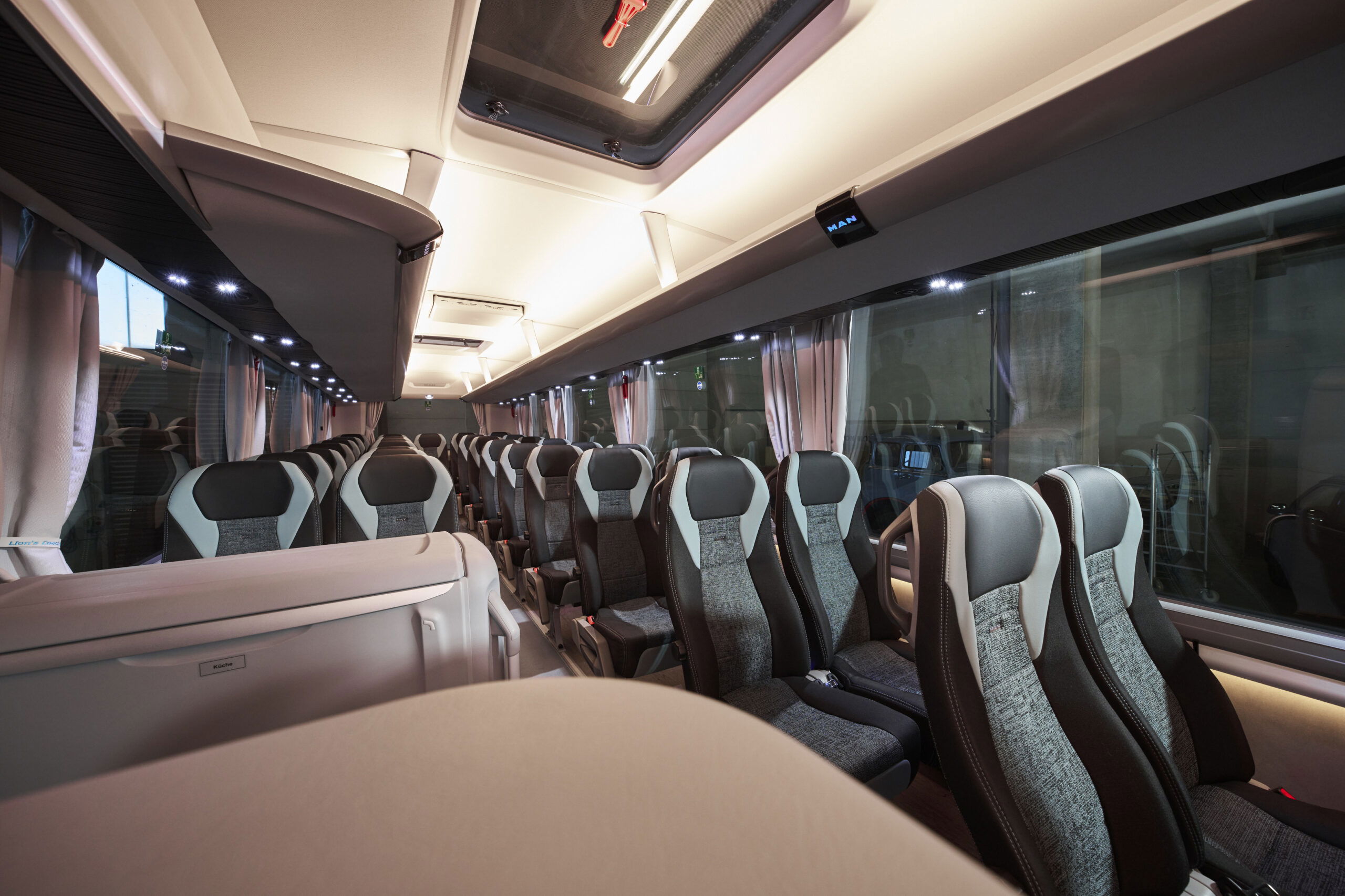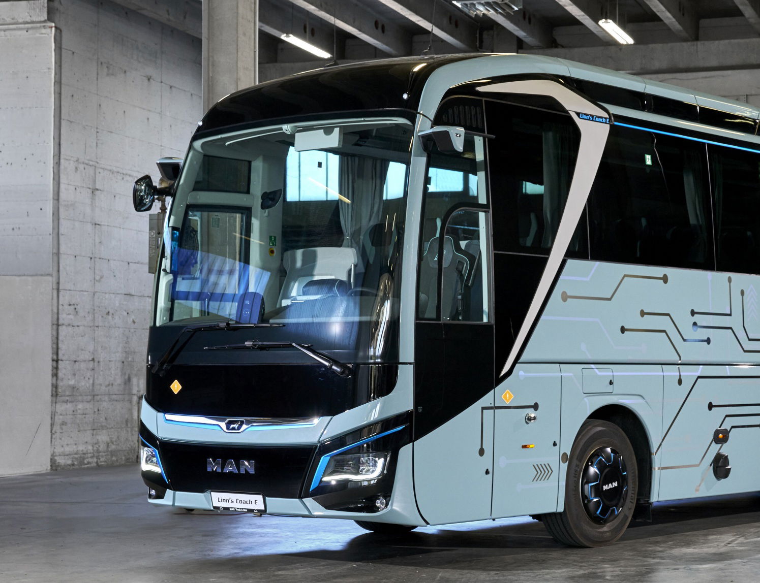 A Lion’s Coach E teljes mértékben a digitális korszakra készült. A típus az MAN és a Neoplan összes modelljénél 2024-es modellévtől bevezetett új elektronikai platformra épül, amely a kiberbiztonsági előírásoknak is megfelel. A modern megjelenésű új vezetői környezet része az intuitív kezelésű MAN SmartSelect rendszer, amely zökkenőmentesen illeszkedik a jármű koncepciójába. A digitális műszerek minden pillanatban áttekinthetően jelenítik meg a hatótávolságot, az energiafogyasztást, a visszatáplálást és az akkumulátor állapotát, ösztönözve a vezetőt a hatékony vezetési stílusra.