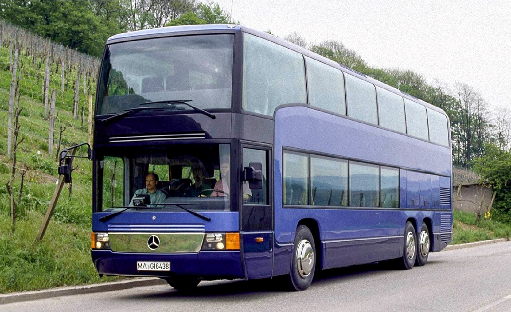 Talán kevesen tudják, de maga a csillagos márka soha nem rendelkezett saját fejlesztésű, sorozatgyártásra érett emeletes turistabusszal. A vállalat ugyan a ’80-as évek végén megkezdte egy ilyen típus tervezését, ám mire a projekt beérett volna, a piaci környezet és a vállalatcsoport szerkezete is alapvetően megváltozott. A fejlesztés eredményeként született meg a 12 méteres O 404 DD jelű emeletes modell, amely az akkoriban bemutatott, trendteremtőnek számító O 404-es buszcsalád alapjaira épült, és 1992-re készült el kísérleti prototípus formájában. A bemutatót a hannoveri IAA haszonjármű-kiállításra időzítették, a gyártás azonban nem a mannheimi Mercedes-üzemben, hanem a kiváló minőségű autóbuszairól ismert Drögmöller heilbronni gyárában zajlott volna. Az eredeti ütemezés 1992-re mindössze néhány előszériás példányt, 1993-ra 40-50, majd 1994–95-re évi akár 100 darabos gyártást irányzott elő.