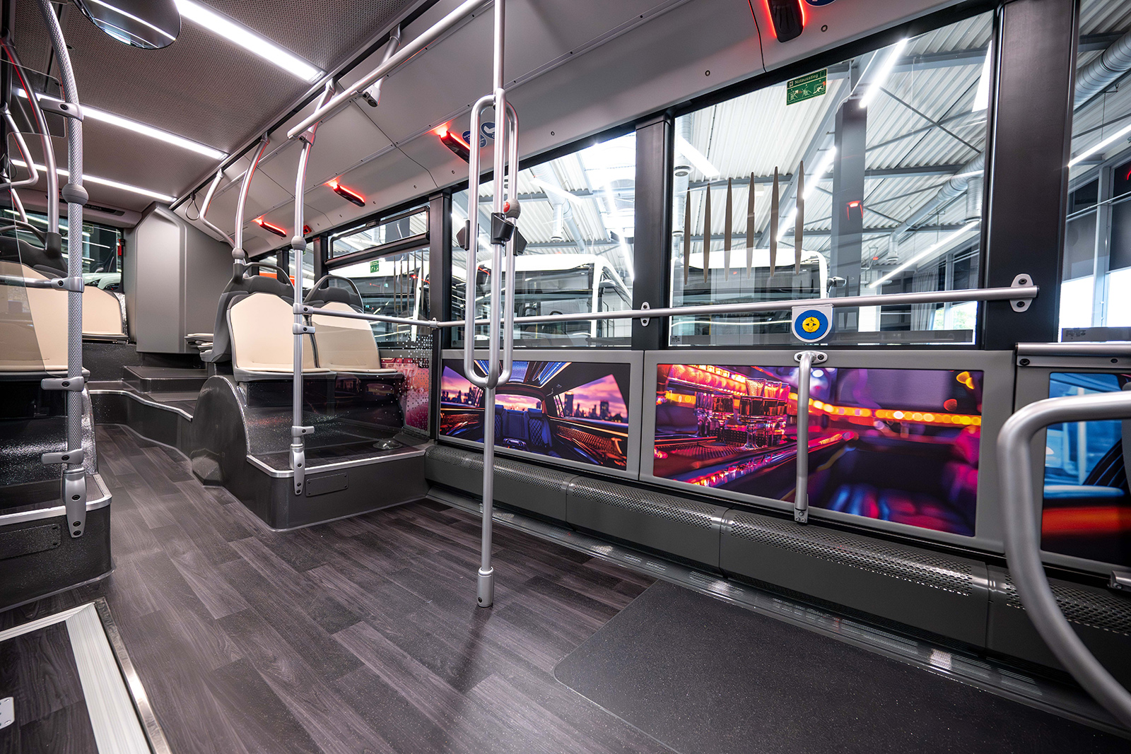 A Citaro típuscsalád moduláris felépítése számtalan egyedi design megvalósítására nyújt lehetőséget mind a külcsín, mind a belső tér tekintetében, így például az utastérben az oldalfali műanyag burkolatok kiválóan alkalmasak nagyméretű képek elhelyezésére – ezek jelen esetben egy limuzin belső terének csillogó atmoszféráját idézik, és főként a nagy területű peronrészen hangsúlyosak. Az exkluzivitást sugalló utastérben a sötét, parkettahatású padlóburkolat kellemes kontrasztot képez az utasülések bézs rostbőr kárpitozásával – ugyanezt az anyagot alkalmazták az utastértől magas üveglappal elválasztott vezetőülés fejtámlarészénél, illetve szegélyeinél is.