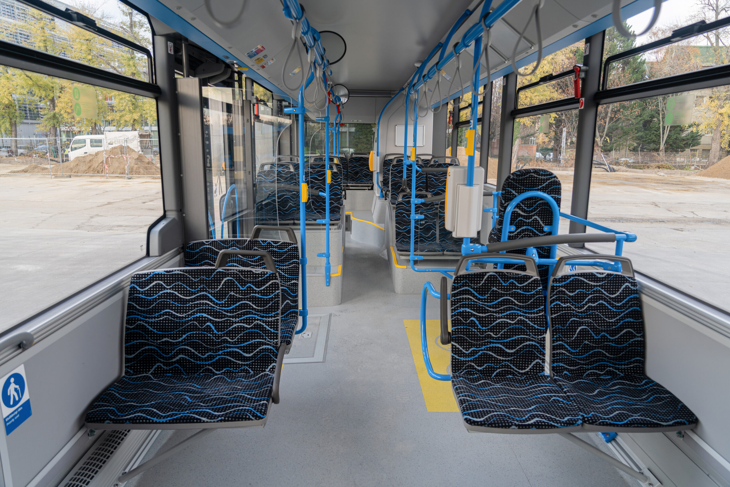 A teljes hosszban alacsonypadlós autóbuszok akadálymentes, légkondicionált fedélzetén összesen 27 darab fix rögzítésű Kiel CITOS típusú utasülés található, négy közülük másfeles kivitelű (ez utóbbiakat német nyelvterületen gyakran „MuKi” néven említik, a „Mutter und Kind”, azaz „anya és gyermek” kifejezés rövidítéseként). A második ajtóval szemközti, a kerekesszékkel vagy babakocsival utazók számára kézi működtetésű rámpán keresztül megközelíthető peronrészen további két darab lehajtható Kiel Verso ülőalkalmatosságot helyeztek el. Természetesen a buszokat korszerű utastájékoztató rendszerrel is ellátták, a kültéri nagyfelbontású, fehér fényű LED-kijelzők és az utastéri színes TFT-monitor egyaránt a pécsi HC Linear terméke. Szintén része a felszereltségnek a biztonsági térfigyelő kamerarendszer, valamint az utasszámláló berendezés, amelynek adatai a BKK menetrendi és forgalomtervezési feladatait támogatják. A buszok kommunikálnak a látássérültek közlekedését segítő távirányítókkal, az utastéri leszállás- és vészjelző gombokat pedig Braille-írással látták el. A biztonságos utascsere érdekében az automata vezérlésű, infraérzékelős utasajtók élvédelemi funkcióval is rendelkeznek, így nem fordulhat elő, hogy bárkit odazárjanak az ajtószárnyak.