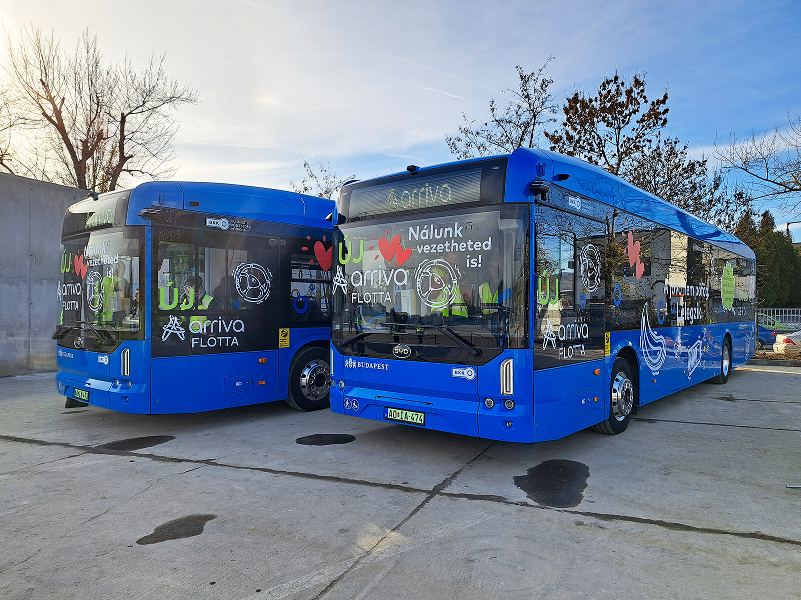 Amint arról korábban beszámoltunk, a BKK E3 és E4 jelű járatcsoportjaira vonatkozó szolgáltatásmegrendelés értelmében a tartalék járművekkel együtt összesen 82 darab – ezen belül 58 szóló és 24 csuklós kivitelű – BYD villanybuszt állít forgalomba Budapesten az ArrivaBus (a napi kocsikiadás 70 jármű lesz). A tervek szerint 2026 első negyedévéig az összes jármű megkezdi szolgálatát a fővárosban, beleértve a csuklós BYD eBus B19 villanybuszokat is, amelyek jellegüknél fogva is újdonságot jelentenek Magyarországon. A BYD előteljesítésének köszönhetően a járműveket az eredetileg tervezettnél hamarabb veheti birtokba az utazóközönség. Az Andor utcai telephelyen tartott sajtórendezvényen négy darab BYD eBus B12.b szóló villanybusz sorakozott fel, amelyek egyúttal a 2023-as Busworld Europe kiállításon debütált típus első magyarországi rendeltetésű példányai (bár a komáromi gyár kapacitásainak lekötöttsége, illetve a típus gyártásának akkor még folyamatban lévő hazai megszervezése miatt ez a széria Kínában készült), az ArrivaBus által rendelt darabszám pedig jelenleg európai összehasonlításban is jelentős mennyiségnek számít. A társaság közelmúltban beszerzett Mercedes-Benz Citaro G csuklósainál bevezetett „városi vagányok”, majd az opciós MAN Lion’s City széria tagjaira alkalmazott „okos oroszlánok” becézést folytatva a nullemissziós BYD-flottát a „zöld zéró” névvel illetik az ArrivaBus marketingesei.