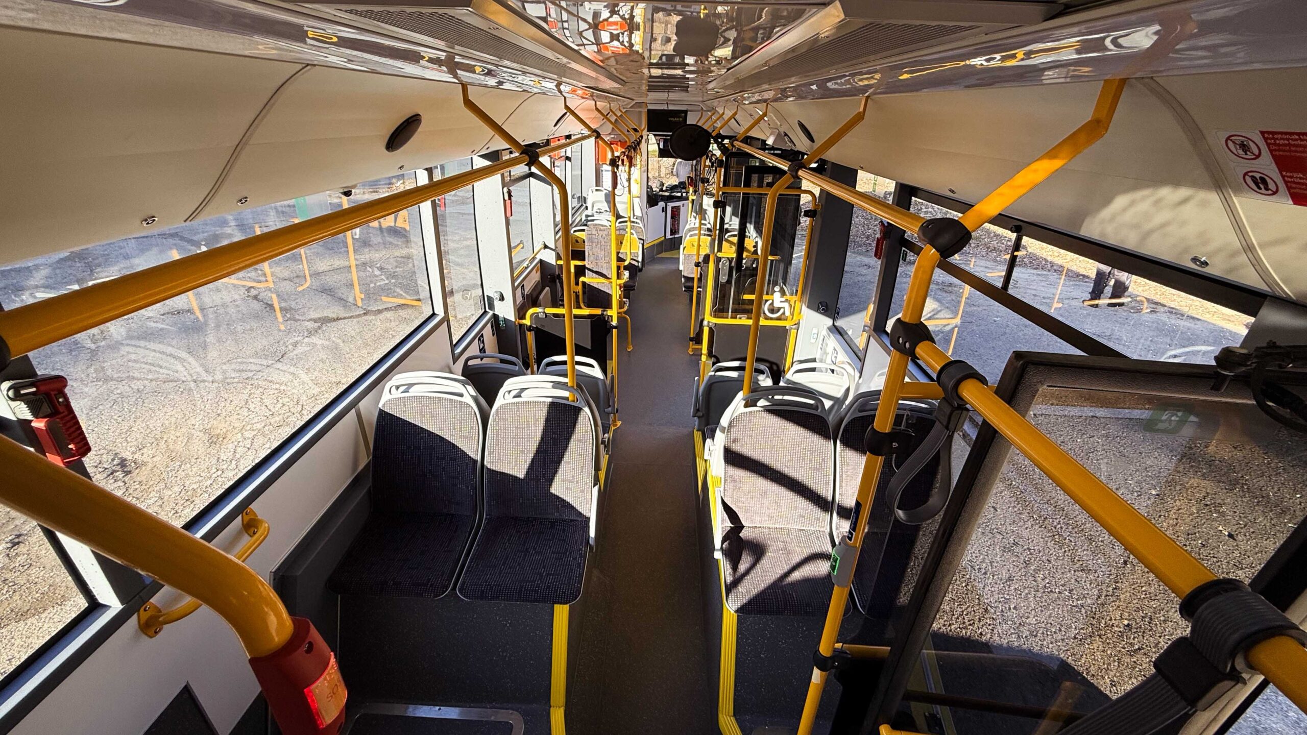 A Komlón forgalomba álló hét új villanybusz a 20 darabos széria tagjainak döntő többségéhez hasonlóan puritán fehér fényezéssel érkezett, bármiféle, a városra utaló egyedi díszítés vagy arculati elem nélkül. A típus – és az eddig átadott Volános példányok – jellemzőinek ismeretében sem a felszereltség, sem pedig a műszaki paraméterek nem okoznak különösebb meglepetést: a három teljes méretű, két felszállósávos utasajtón át megközelíthető, teljes hosszban alacsonypadlós utastérben 30 ülő- és 55 állóhely, valamint egy kerekesszék vagybabakocsi elhelyezésére alkalmas férőhely várja az utazóközönséget. A mozgáskorlátozottak felszállását segítő, a második ajtónál elhelyezett rámpa kézi működtetésű, az ülőalkalmatosságok a lengyel Ster termékei. A kényelmi extrák listáján szerepel többek között a légkondicionáló, a pécsi HC Linear által szállított korszerű elektronikus utastájékoztató rendszer, a fedélzeti térfigyelő kamerarendszer, valamint az utasok mobil eszközei számára fenntartott USB-töltőaljzatok is.