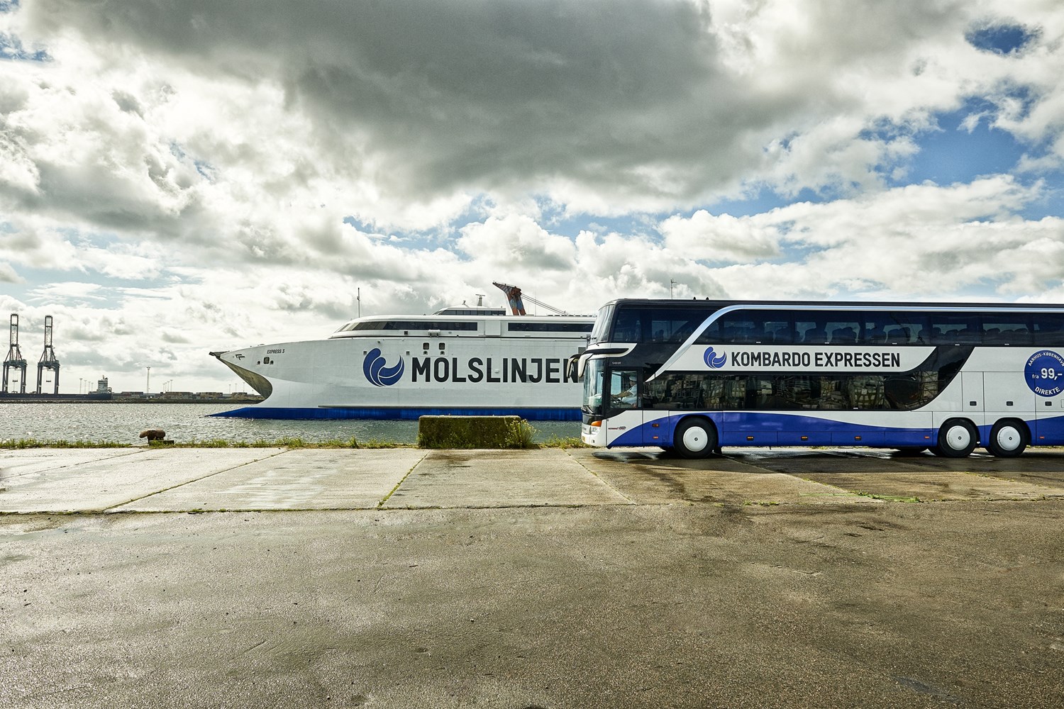A Molslinjen által kialakított vegyes közlekedési modell egyik fő eleme az országos expressz buszhálózat, amely napjainkban 112 viszonylaton biztosít összeköttetést 28 város között. A hajótársaság égisze alatt szolgáló autóbuszok az önálló Kombardo Expressen márkanév alatt közlekednek (az elnevezés a „kombinált, összekapcsolt, több elemből álló” kifejezésre utal), amihez egyedi arculat is társul: a karakteres grafikai elemek nemcsak vizuálisan különítik el a járatokat más szolgáltatók távolsági kínálatától, hanem tudatosan erősítik a kombinált rendszer egységes megjelenését is. Fontos hangsúlyozni, hogy a Kombardo Expressen nem egyetlen autóbuszvonal, hanem egy kiterjedt hálózat. Az észak- és közép-jütlandi Aalborg, Viborg, Silkeborg és Randers városokból induló járatok Aarhusnál futnak össze, majd a Molslinjen gyorskompjain kelnek át Sjællands Oddére. Innen a buszok több irányba ágazva folytatják útjukat Sjællandon, biztosítva a közvetlen, átszállásmentes kapcsolatot Dánia északnyugati és keleti országrésze között. A szolgáltatási koncepcióhoz a járműállomány is igazodik: a hálózaton jelenleg prémiumkategóriás Setra S 531 DT emeletes autóbuszok alkotják a gördülőállomány gerincét. A kifejezetten hosszú, interregionális viszonylatokra tervezett járművek nagy kapacitású csomagtere, tágas utastere és magas komfortszintje egyaránt a többórás, akár határokon átnyúló utazások igényeit szolgálja. A Kombardo Expressen működésének szerves része az egységes foglalás is: a jegyek közvetlenül a társaság felületén vásárolhatók meg, külön busz- és kompjegy nélkül. A rendszer alapelve az integrált működés: az autóbuszok menetrendszerűen felhajtanak a társaság kompjaira, így az utazás megszakítás és átszállás nélkül valósul meg szárazföldön és tengeren egyaránt.