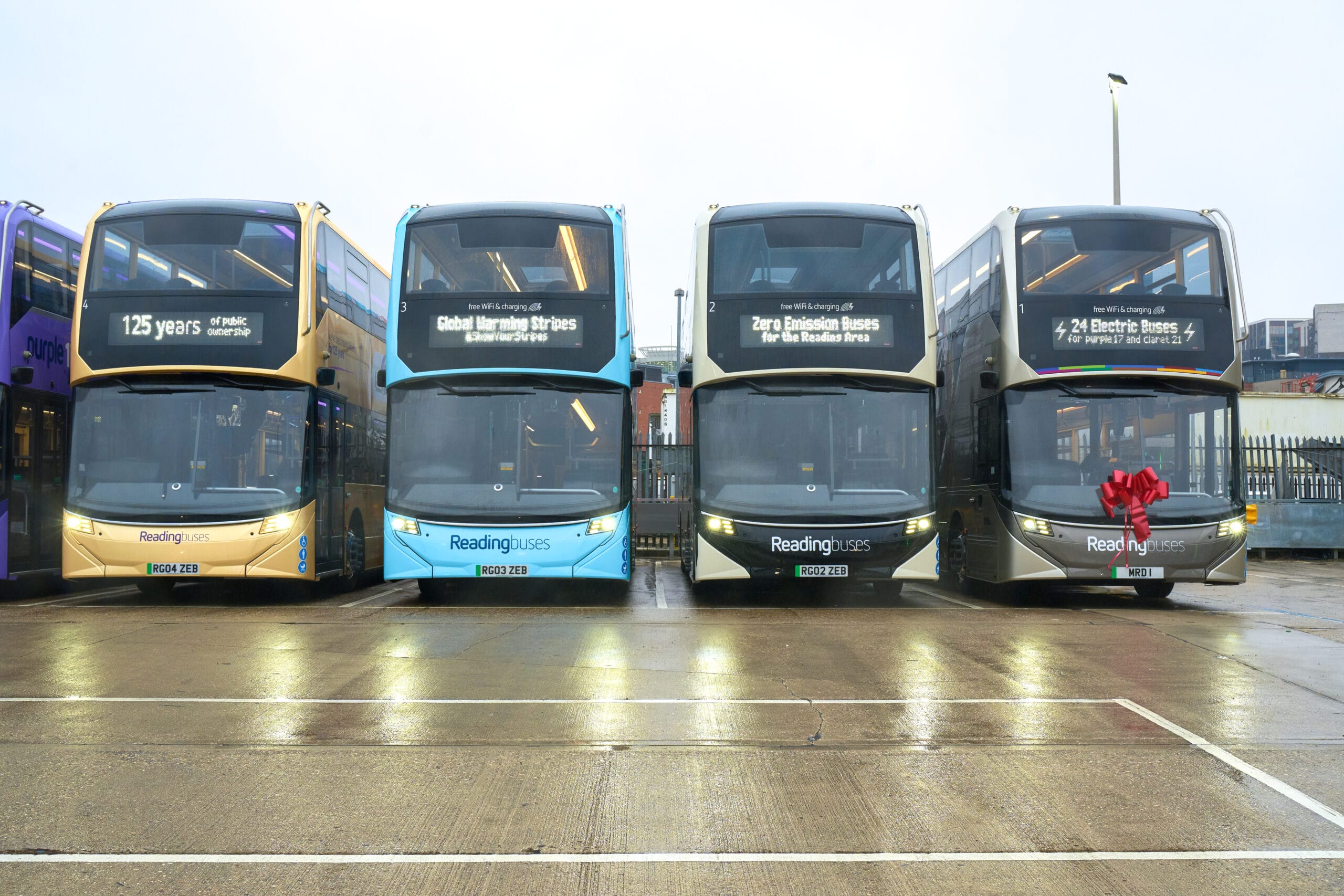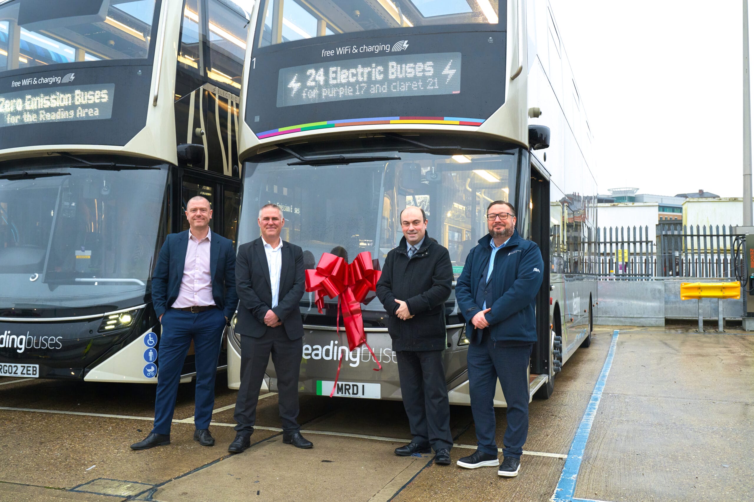 Pontosan két tucat, azaz összesen 24 darab vadonatúj Alexander Dennis Enviro400EV városi emeletes villanybuszt állított szolgálatba a dél-angliai Berkshire megyében található Reading városának közlekedési szolgáltatója, a Reading Buses. A járművek ünnepélyes átadóceremóniáját február 5-én, a társaság Great Knollys Streeten található járműtelepén tartották. Az Alexander Dennis törzsvásárlói közé tartozó cég most először vásárolt tisztán elektomos hajtású emeletes buszokat, ugyanakkor az alternatív hajtásmódok nem idegenek tőle, korábban például élenjárt a biogáz-üzemű típusok alkalmazásában. A most bevezetésre kerülő zéró emissziós autóbuszok az üzemeltető reményei szerint jelentős előrelépést hoznak majd az utazási élmény terén.