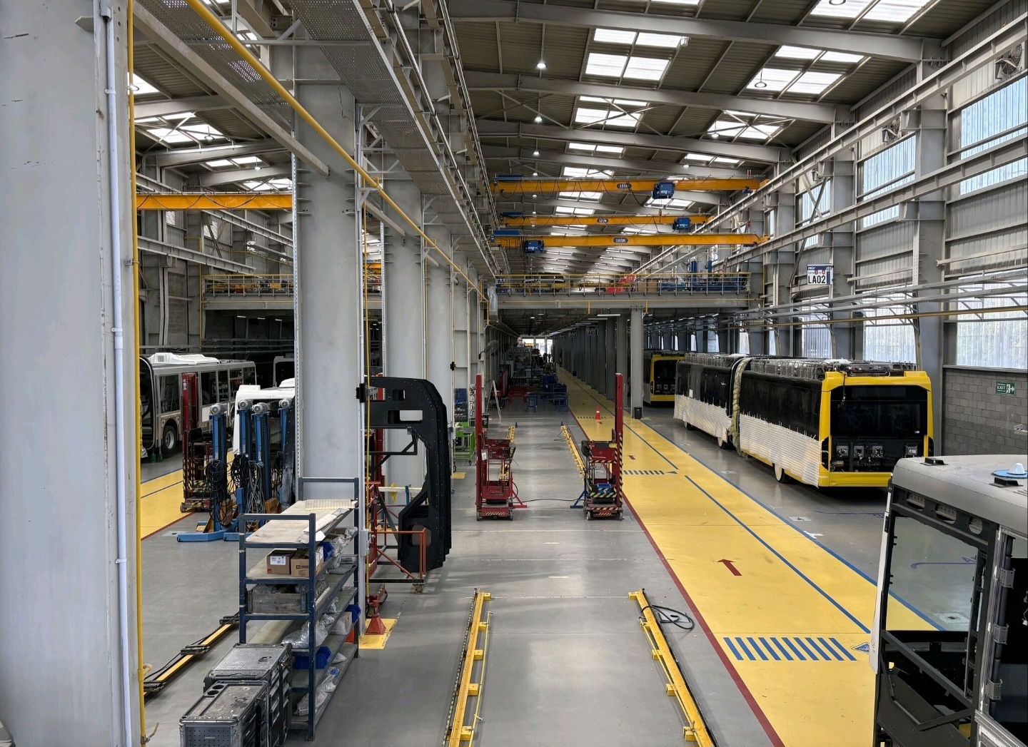MCV’s new production line consists of two parallel assembly lines with ten workstations, complemented by a central supply corridor and gallery level. The chassis, drivetrain, driver’s cab, and braking system are manufactured in Borås, Sweden, and the completed main units are shipped to Egypt by sea. The first phase of assembly takes place at one of MCV’s preparatory plants, from where they are transferred to the new hall for the complete vehicle build. The officially announced annual capacity of the assembly line is 1,200 buses, although the company currently plans to produce about 700 vehicles annually, mainly the 12-meter Volvo 7900 Electric, the 18-meter articulated 7900 Electric Articulated, and the low-entry urban-suburban 8900 Electric, now only available with an electric drivetrain. The program has led to the hiring of approximately 300 new employees, who work exclusively on the Volvo project, out of the total workforce of about 2,000 at the Cairo industrial center.